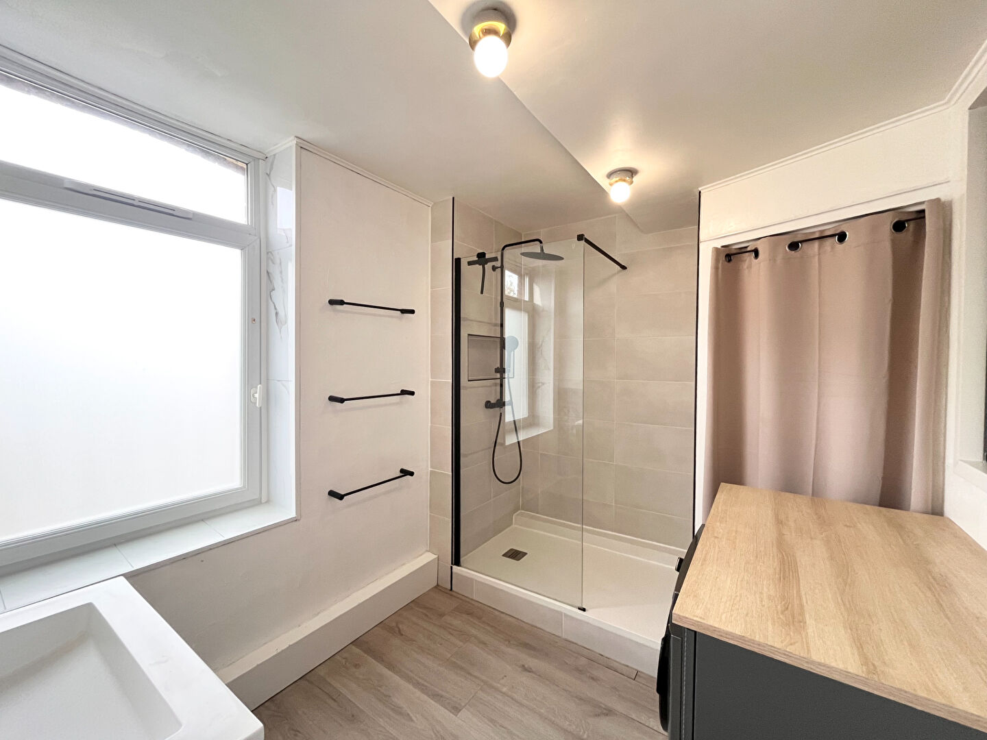 ...A l'étage : une grande mezzanine servant de chambre et une salle d'eau avec douche et WC...