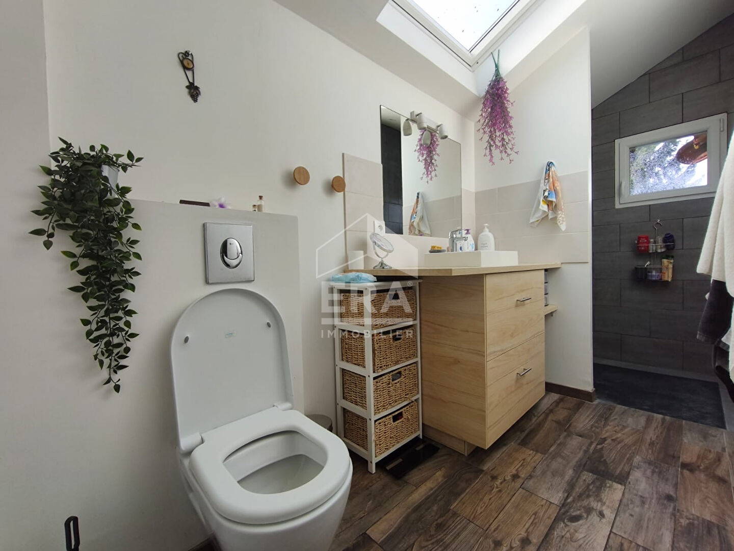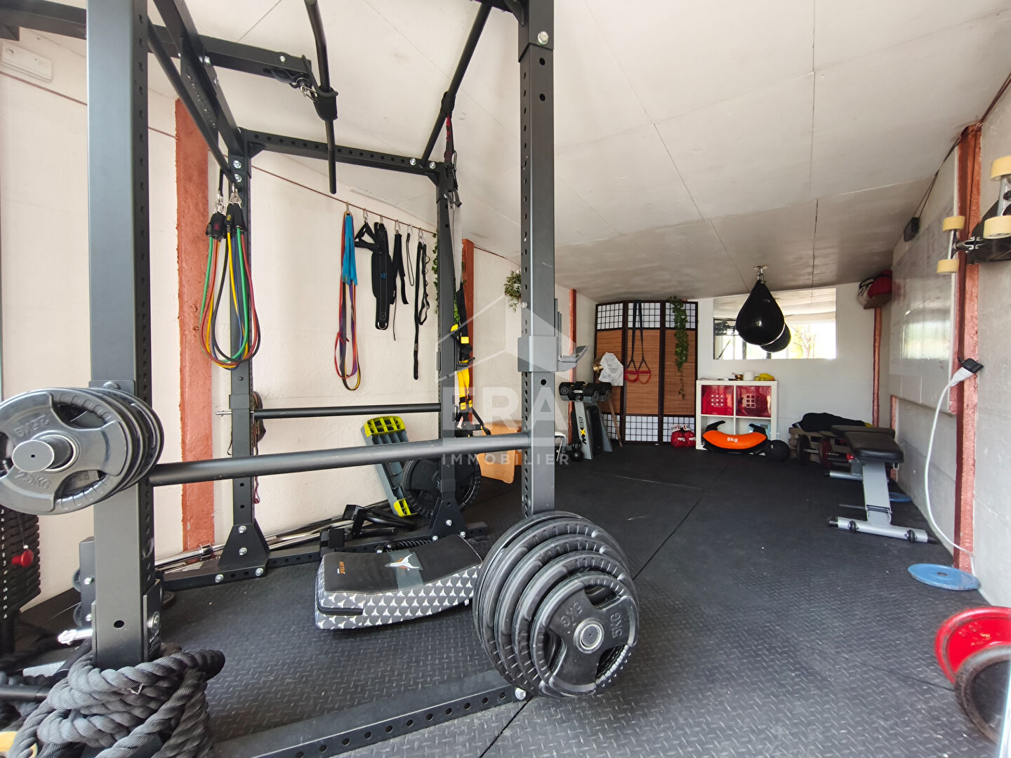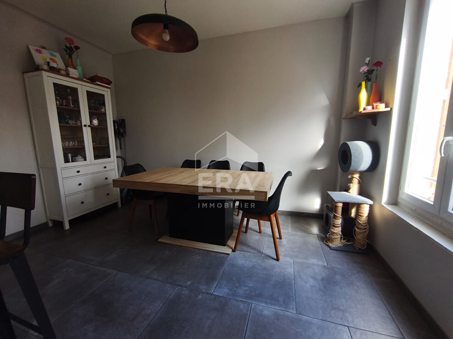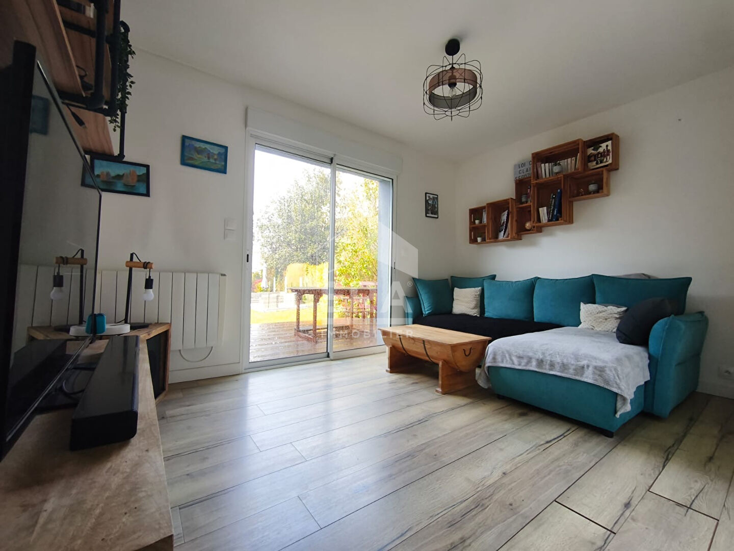 ...Séjour lumineux de 22,80 m² avec placards, desservant la partie nuit et le garage...