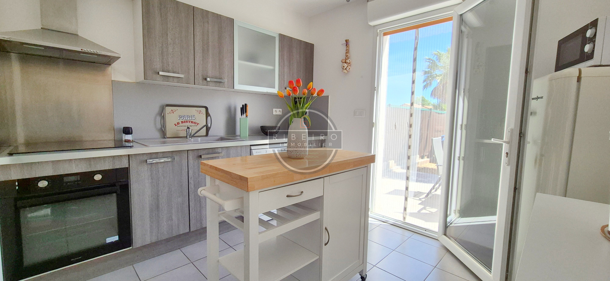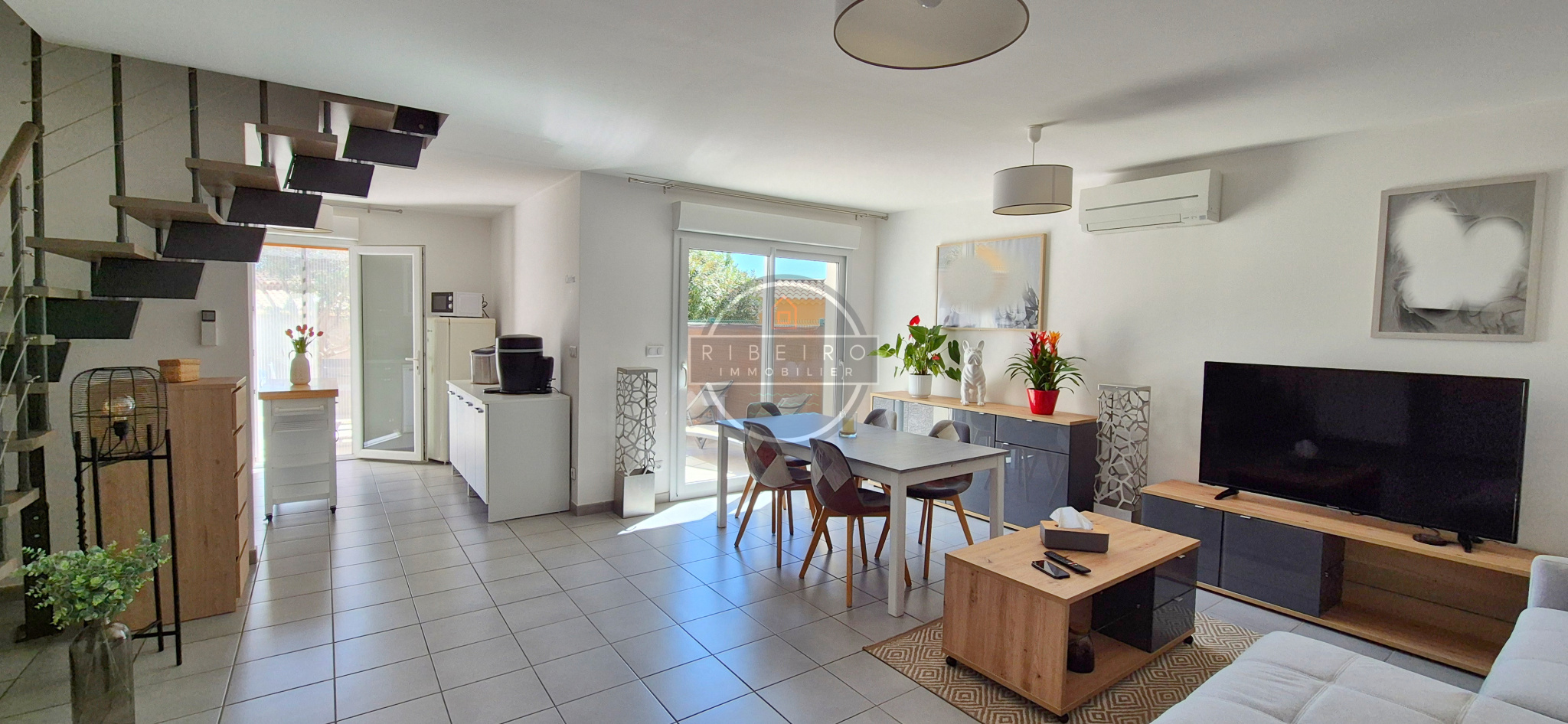 ...Au rez de chaussée, un bel espace de vie climatisé avec sa cuisine américaine, d'une surface...