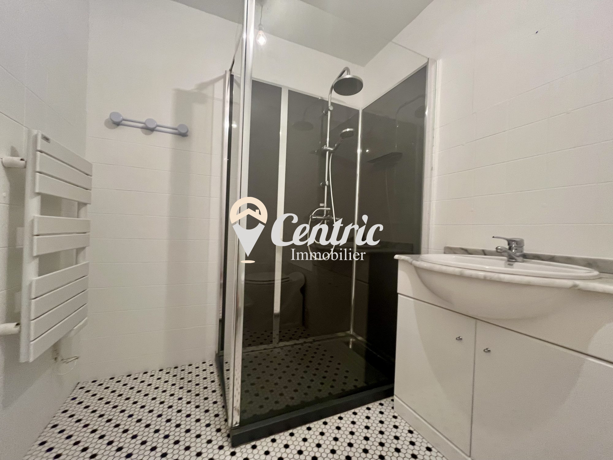 ...A l'étage une chambre avec placard, un bureau avec étagères et une salle d'eau avec douche, une...