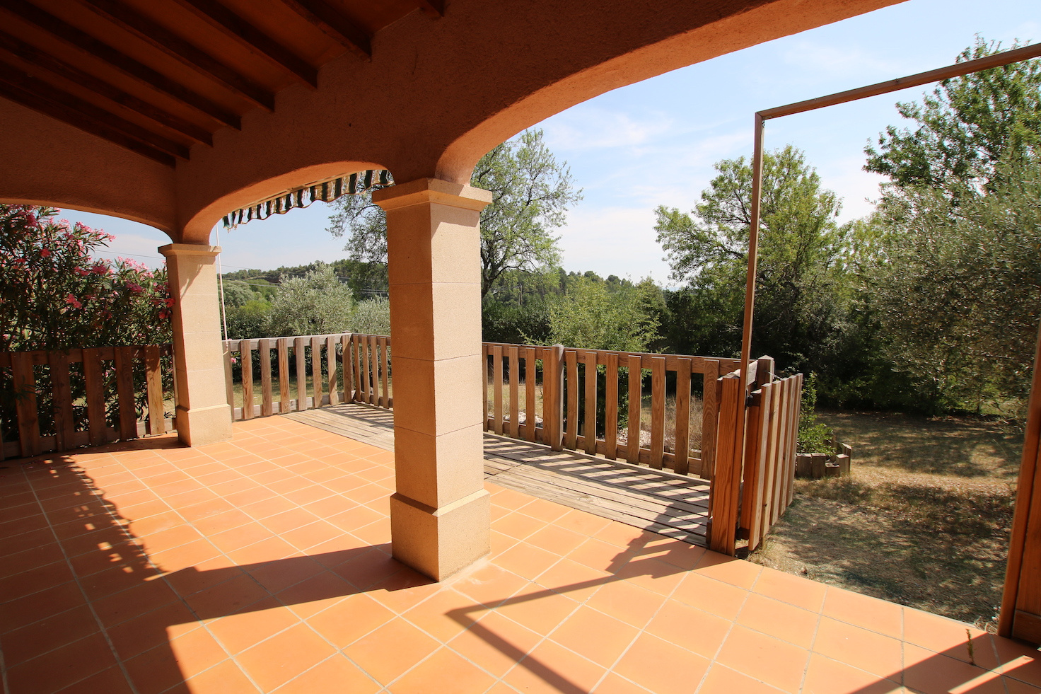 ...Sur un beau terrain de 350 m², vous trouverez une terrasse plein sud, une jolie piscine en bois...
