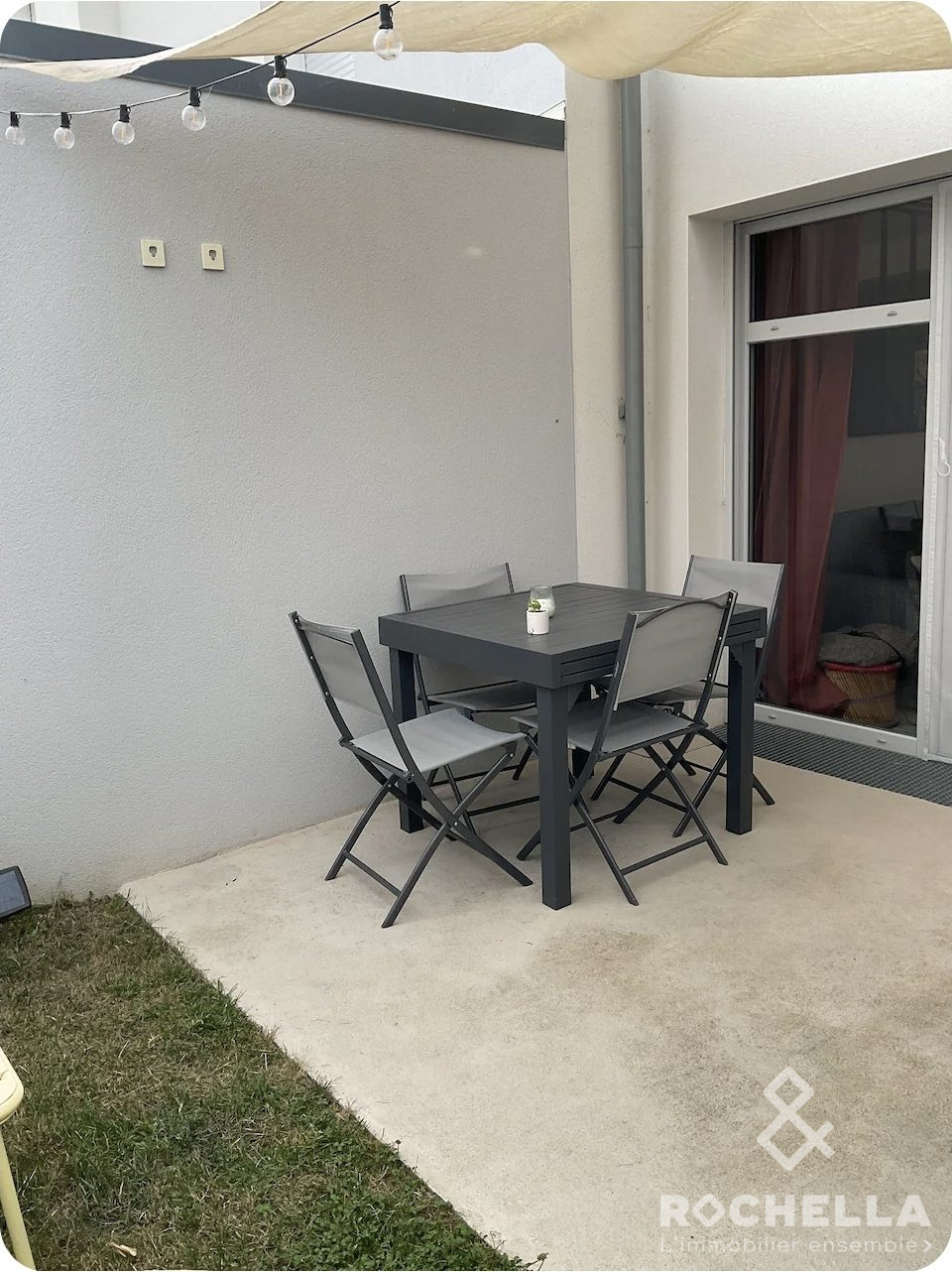 ...Elle se compose d'une entrée avec rangements, séjour avec cuisine ouverte aménagée et équipée, wc...