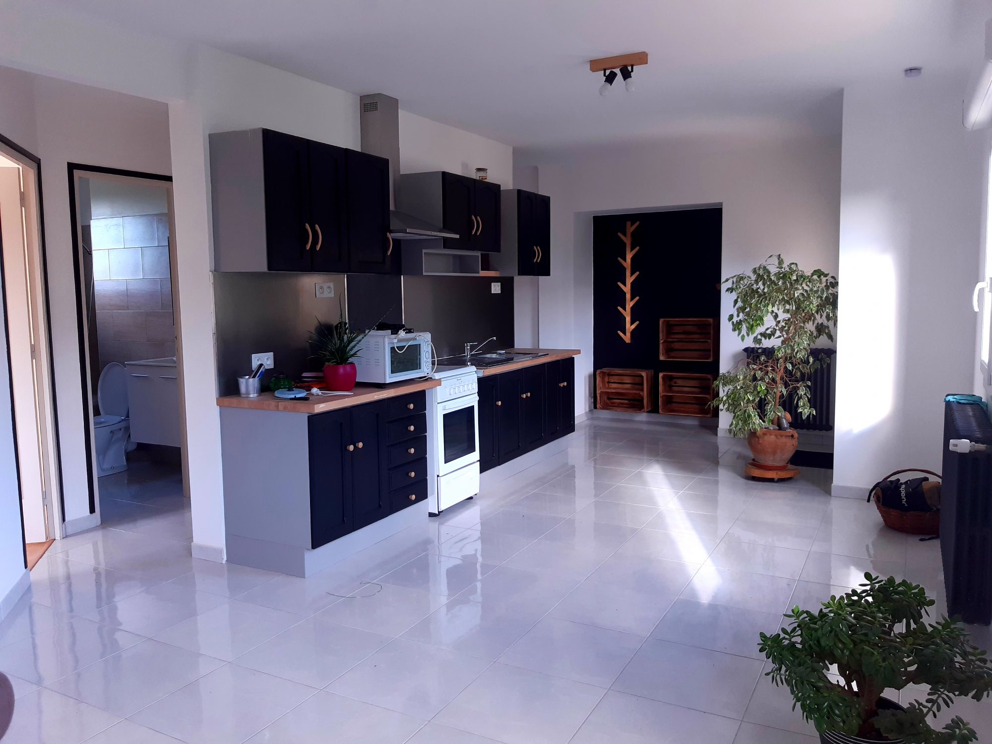 ...Au rez-de-chaussée :Entrée avec placardsSéjour lumineux avec cuisine ouverte équipée et...