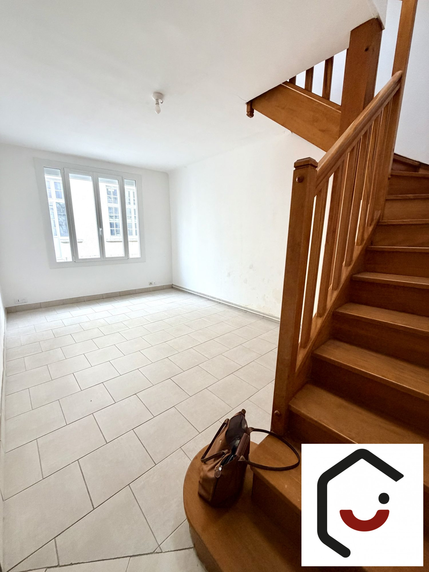 ...Séjour lumineux de 22,80 m² avec placards, desservant la partie nuit et le garage...
