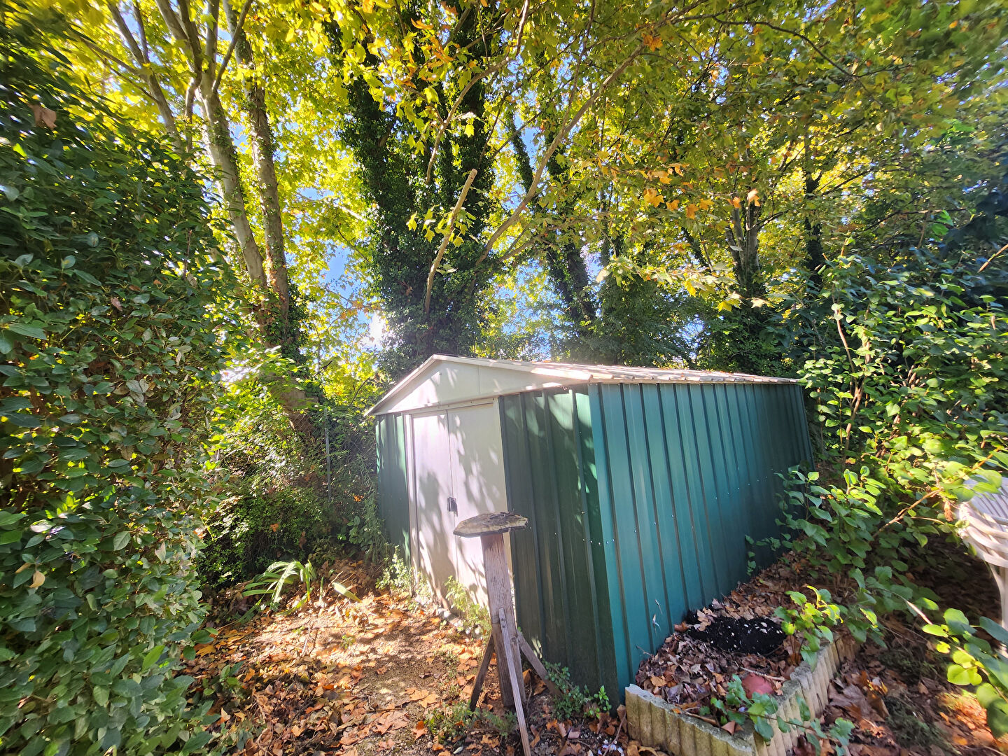 ...Vous profiterez du confort d'un jardin privatif de 360 m², agrémenté d'un box métallique idéal...