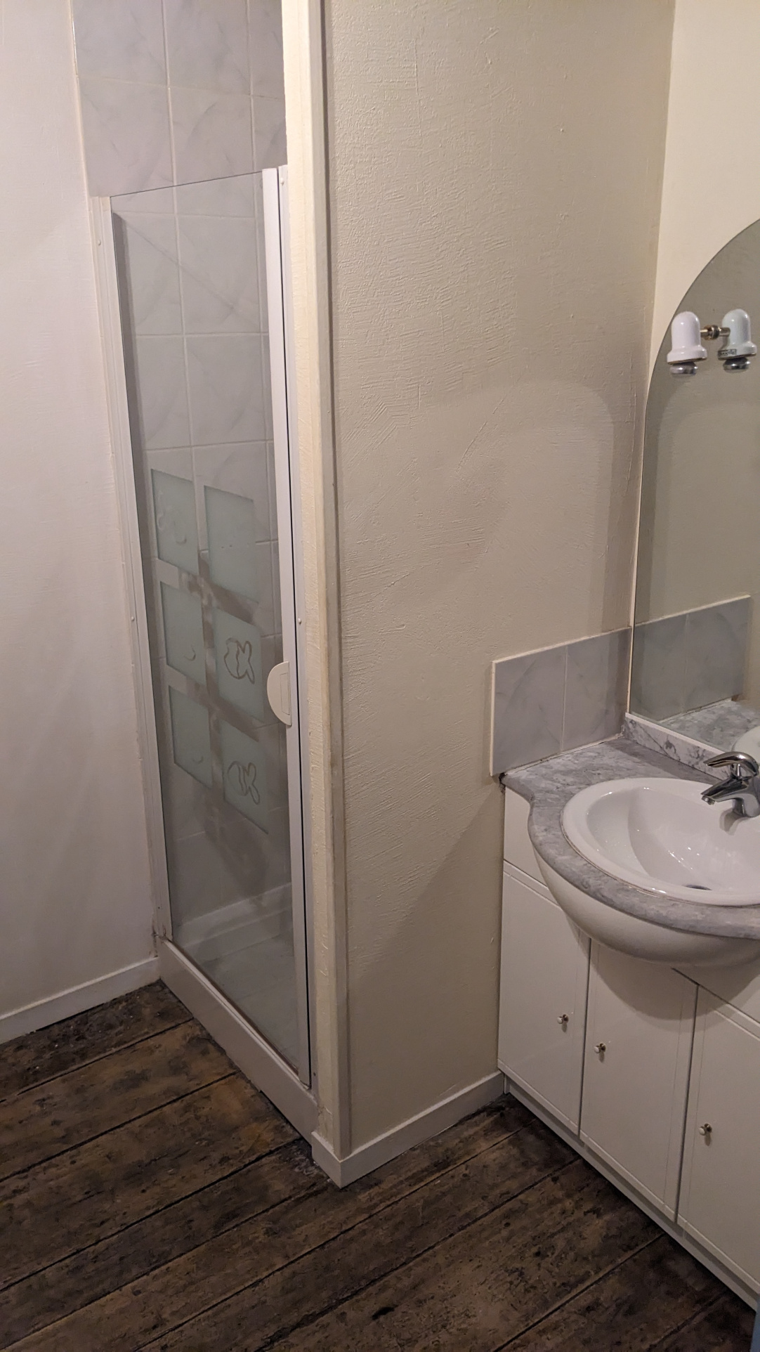 ...A l'étage une chambre avec placard, un bureau avec étagères et une salle d'eau avec douche, une...