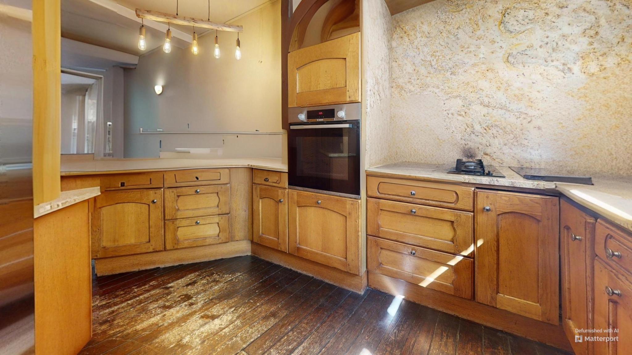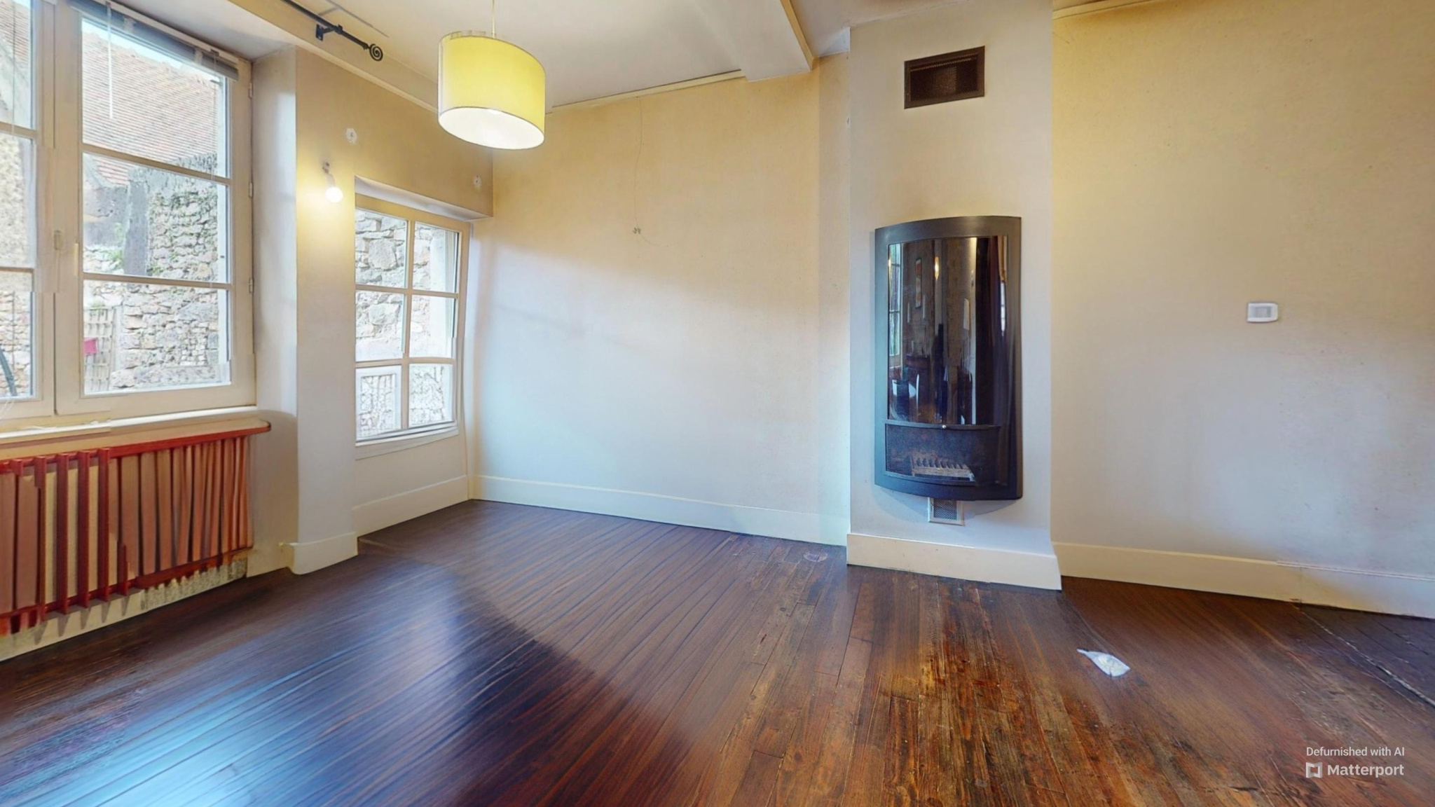 ...Au premier étage, une cuisine semi équipée, une salle à manger avec poele à bois donnant sur la...