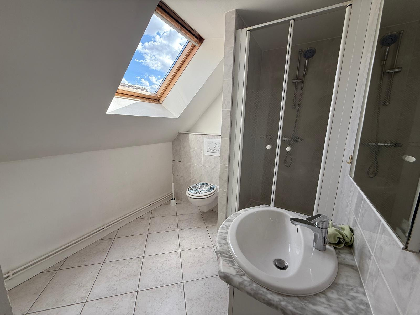 ...Comprenant au rdc, une entrée, une salle d'eau avec WC, lavabo et douche, un séjour/cuisine de...