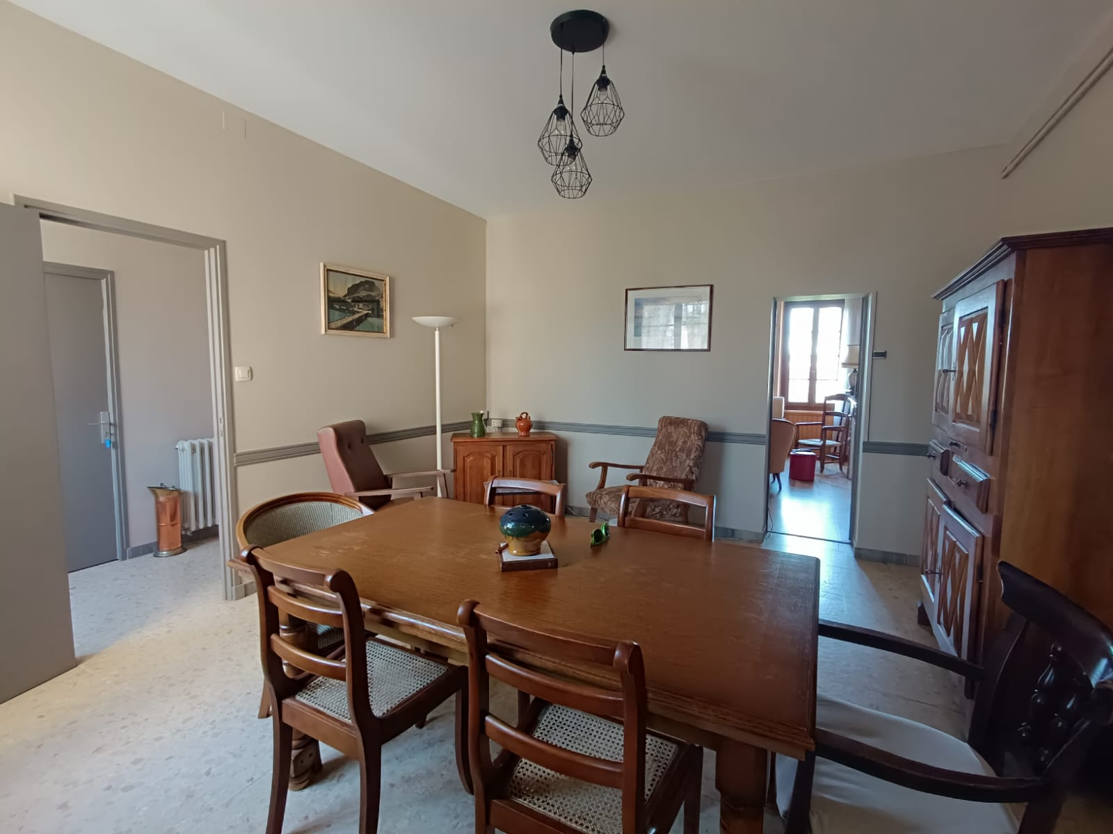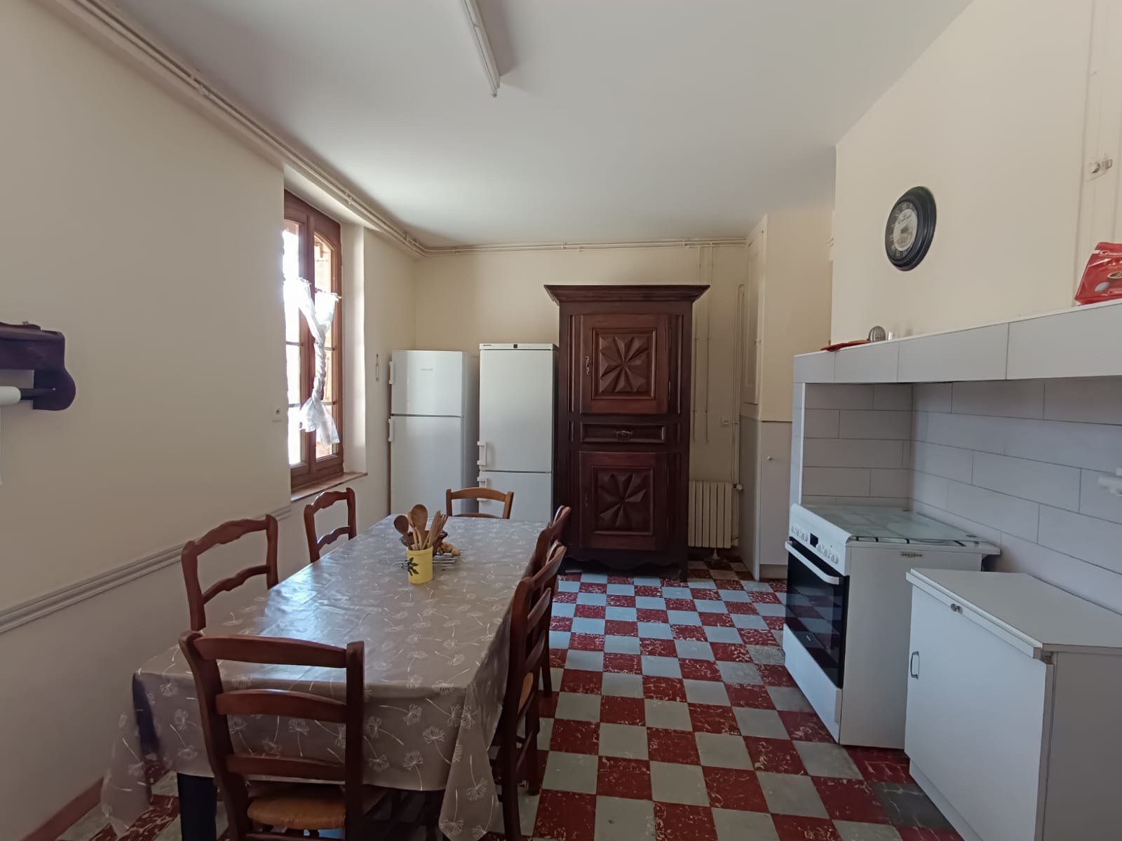 ...Elle se compose d'une entrée qui dessert en premier lieu une grande cuisine séparée et équipée,...