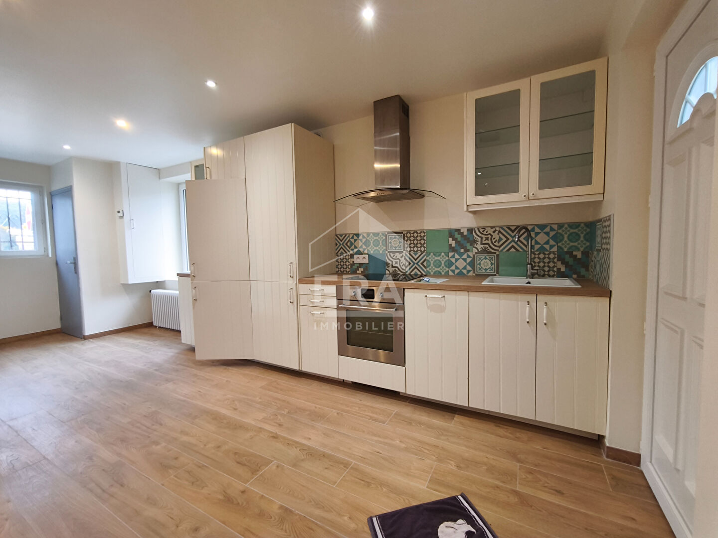 ...Au rez-de-chaussée, vous découvrirez une belle pièce de vie lumineuse avec salon et cuisine...