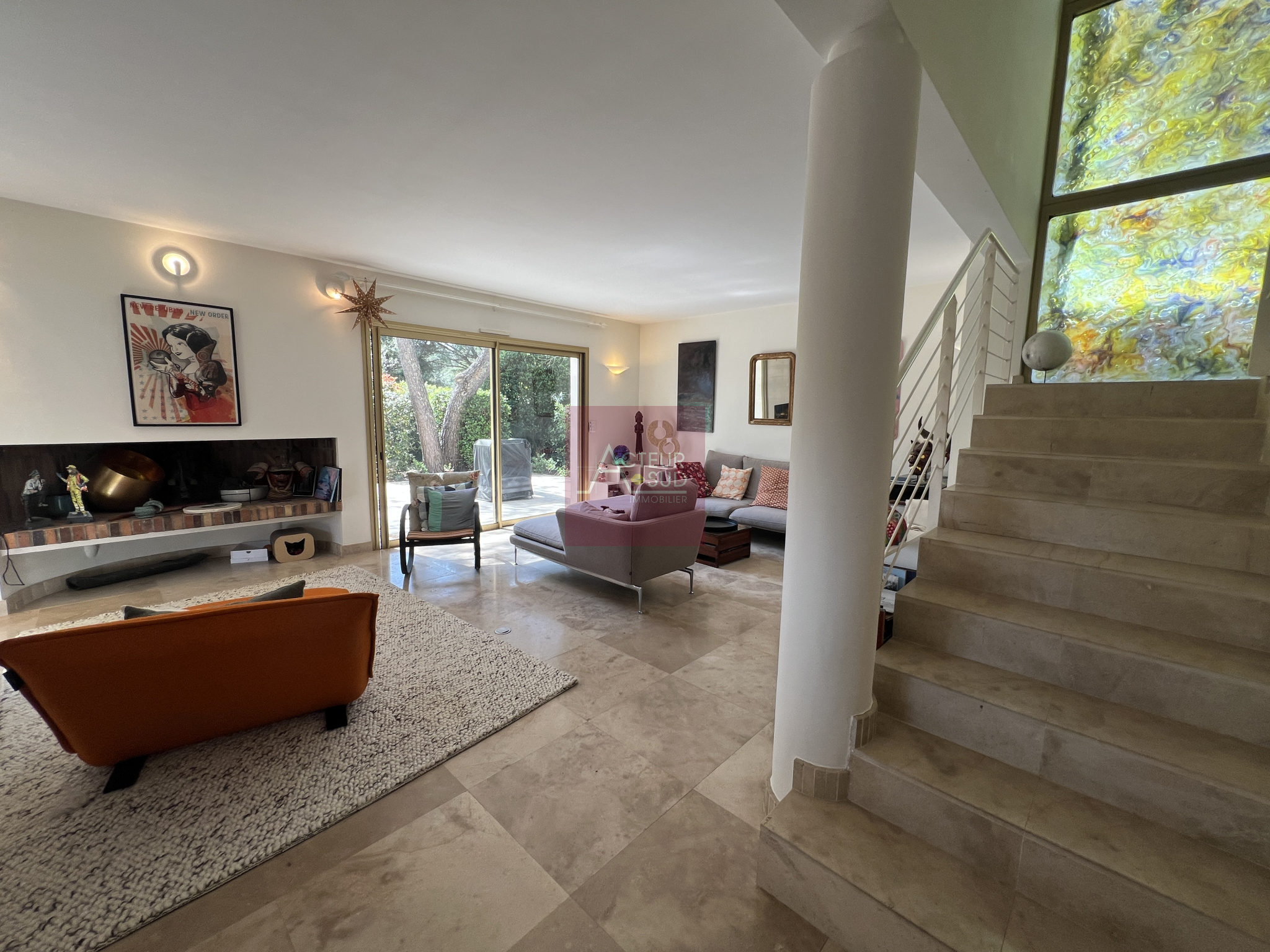 ...Elle offre un vaste séjour lumineux de 38 m2, climatisé, agrémenté d'une cheminée, ainsi qu'une...