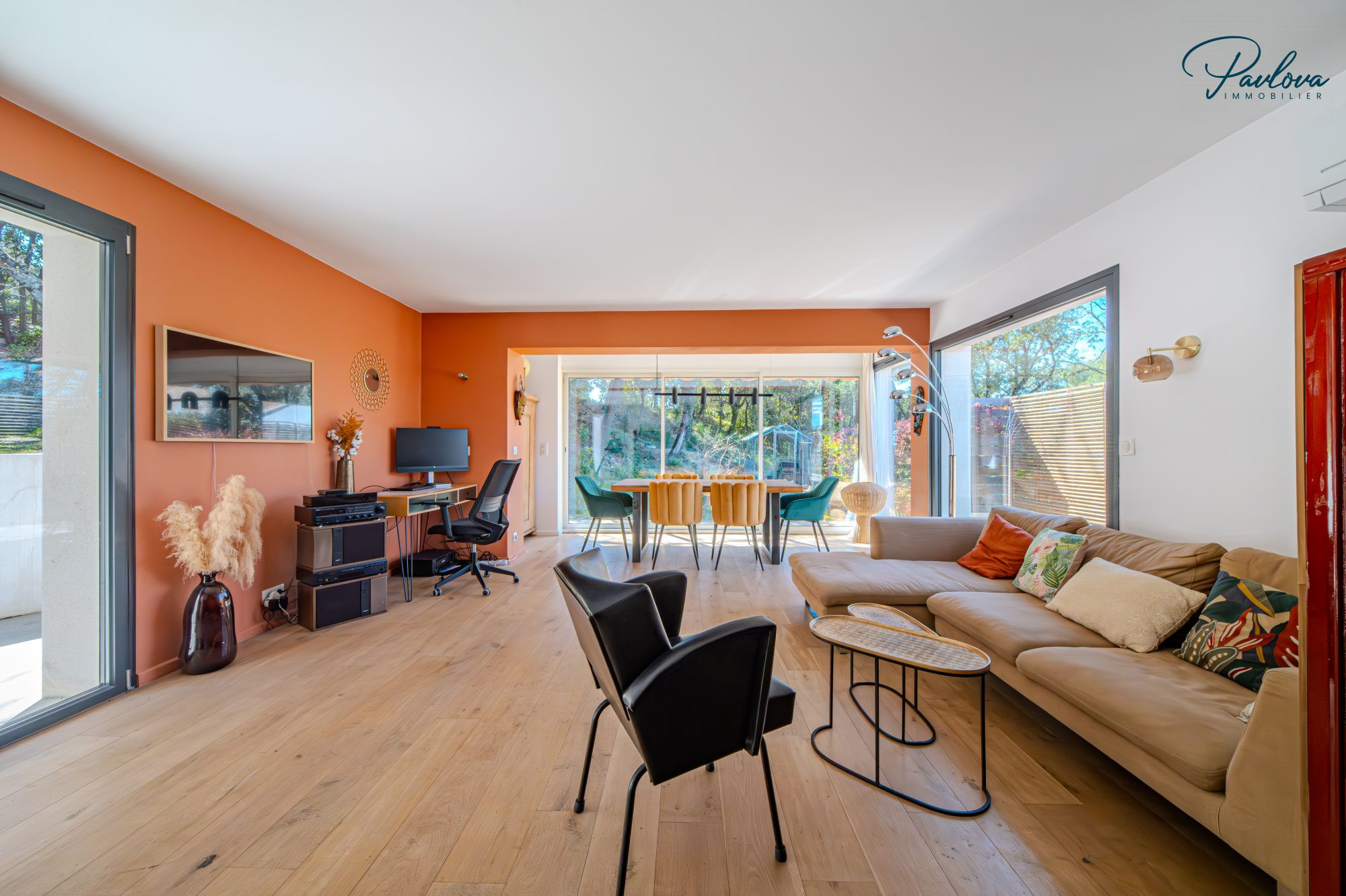 ...Dans un cadre arboré superbe villa contemporaine de type T5 entièrement meublée (année de...