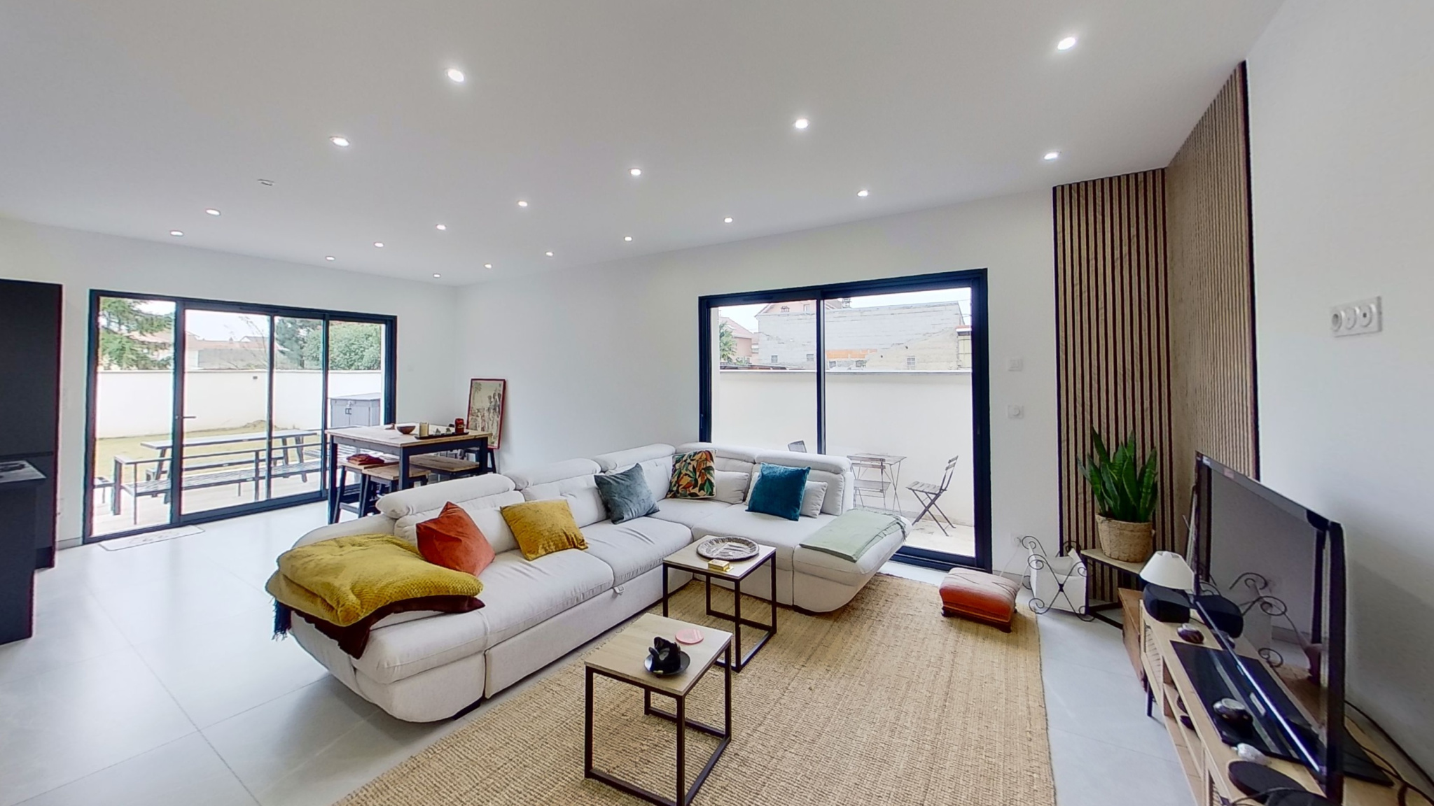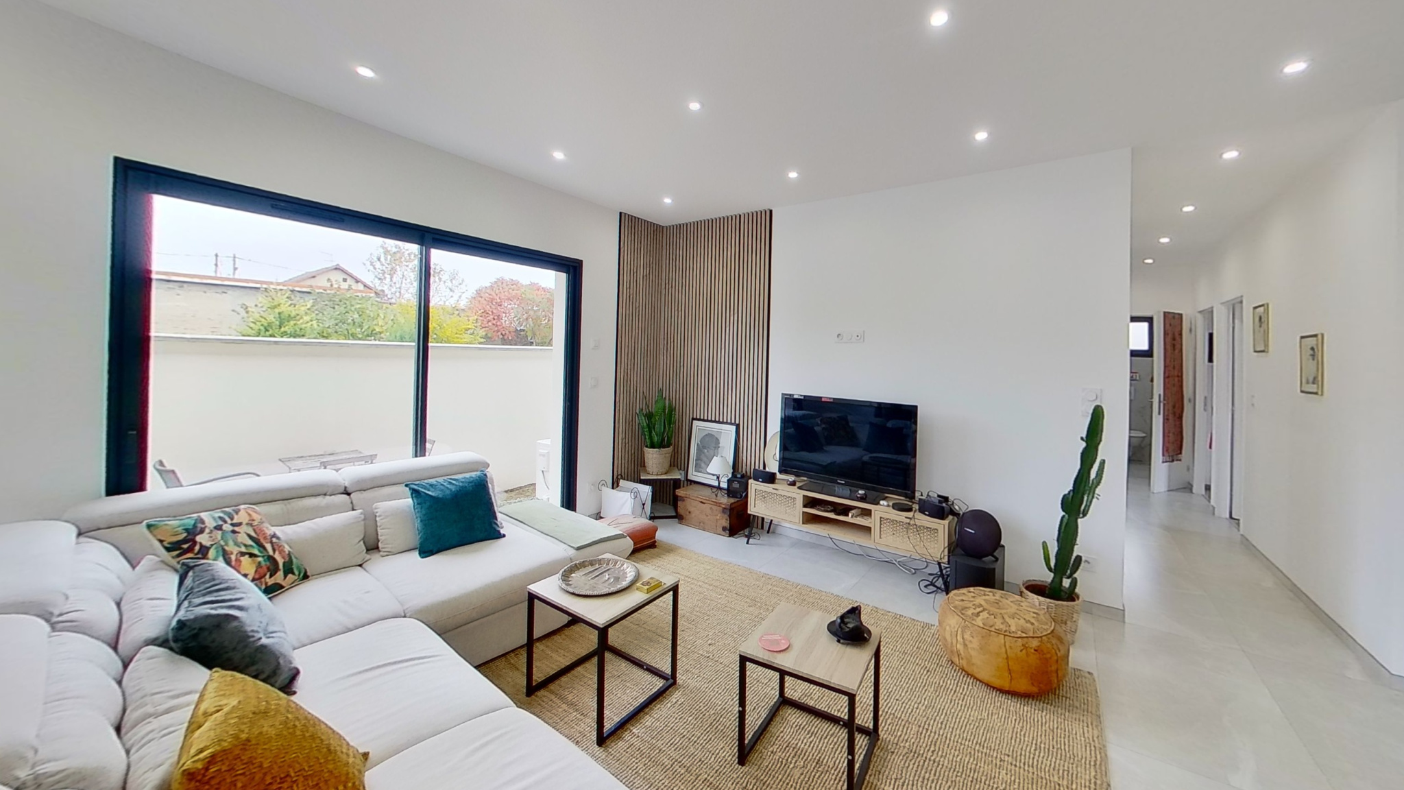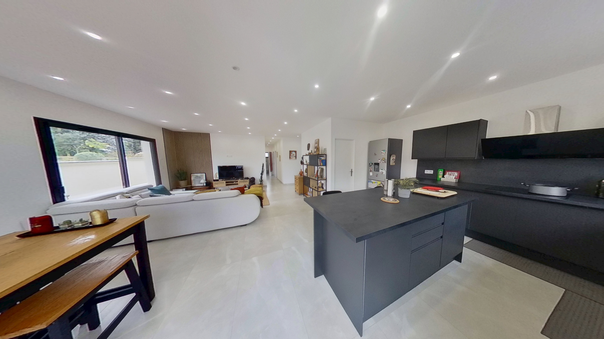 ...Elle est composée d'un salon / séjour ouvert sur la cuisine équipée...