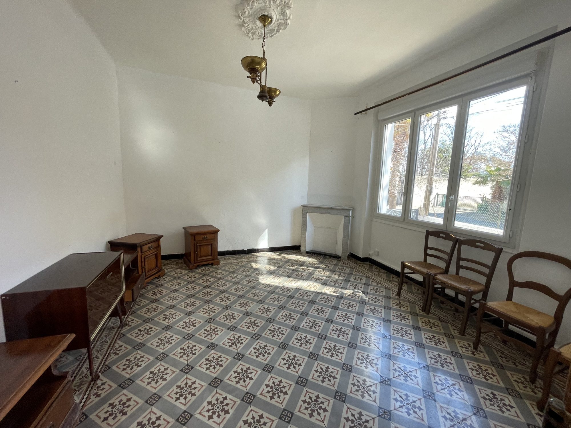 ...Séjour lumineux de 22,80 m² avec placards, desservant la partie nuit et le garage...