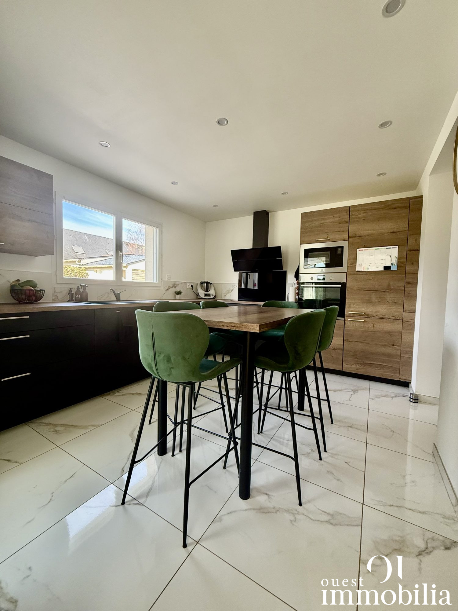 ...Au rez-de-chaussée, une entrée mène vers un salon-séjour lumineux avec kitchenette ouverte,...