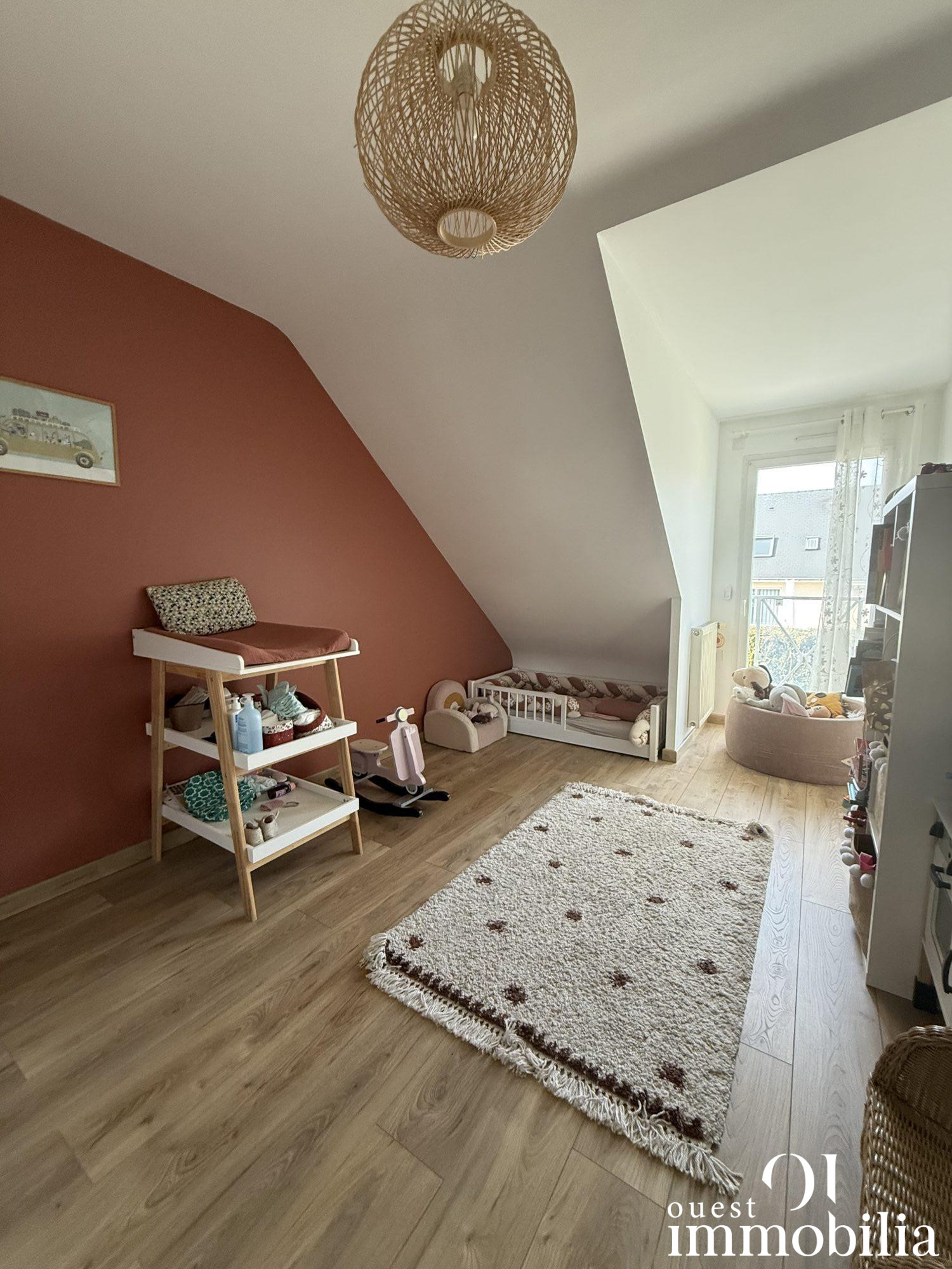 ...A l'étage: Grand palier desservant 2 belles chambres dont une avec placard, salle d'eau...