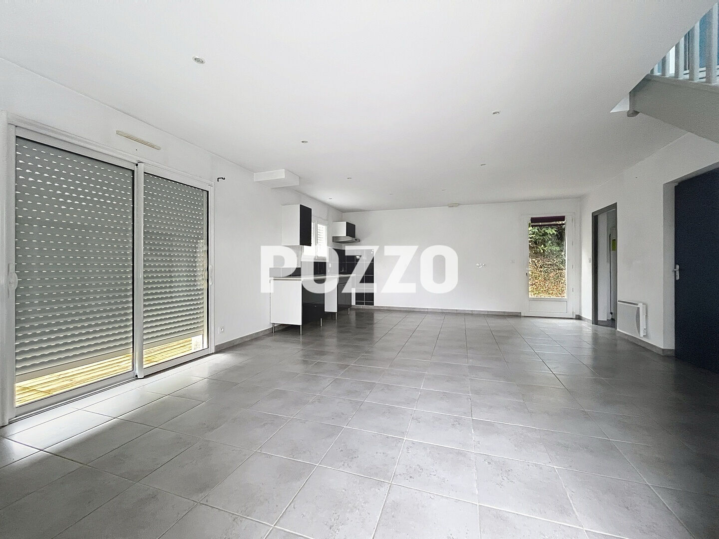 ...Retrouver au rez-de-chaussée, une pièce de vie avec cuisine américaine, une chambre, et la salle...