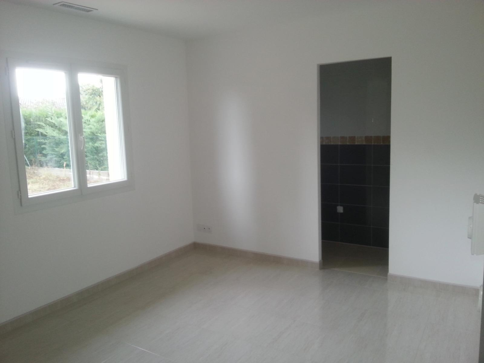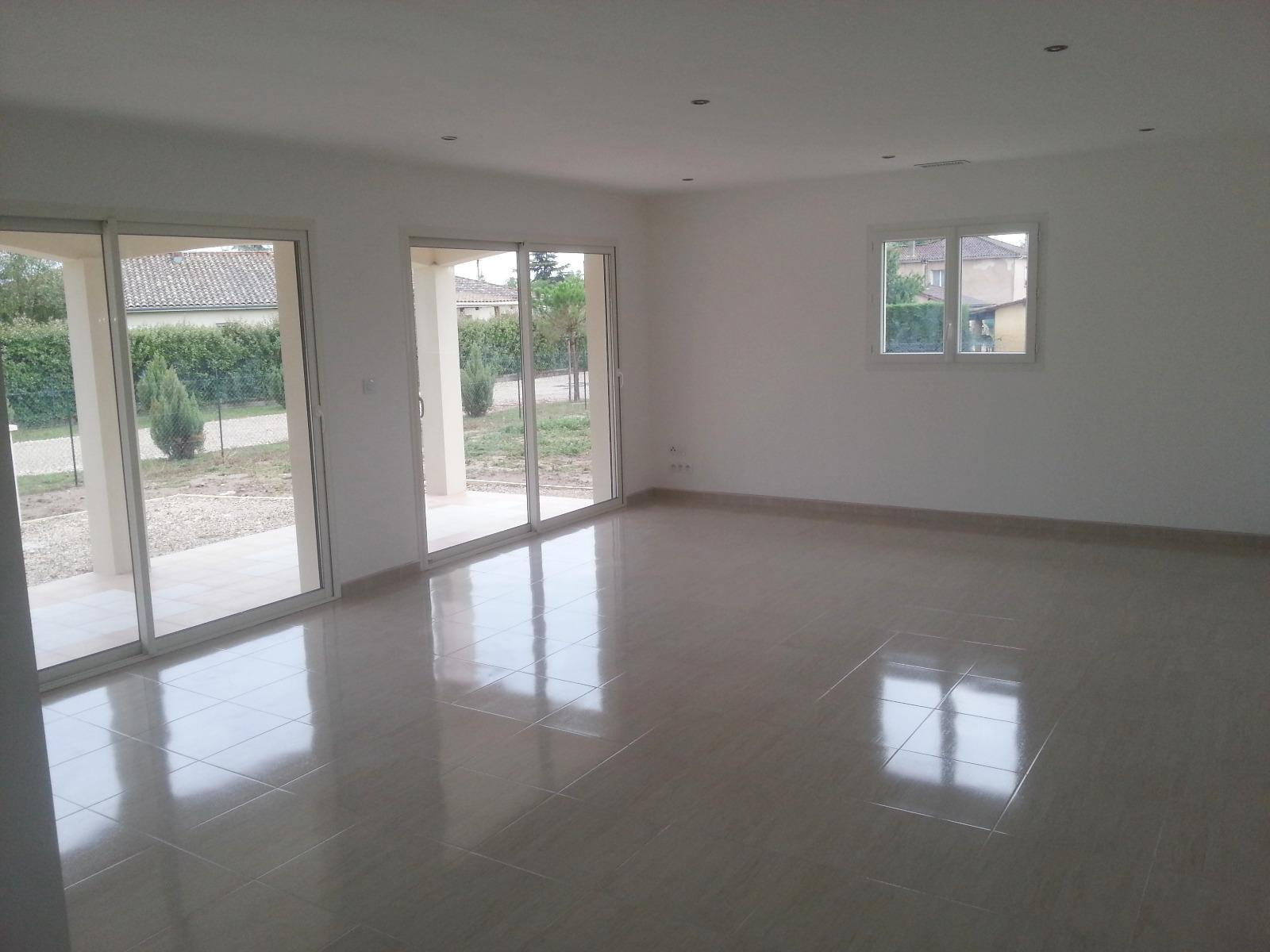 ... MARMANDE, villa de plain-pied à louer : entrée avec placard, séjour sur terrasse couverte et coin c...