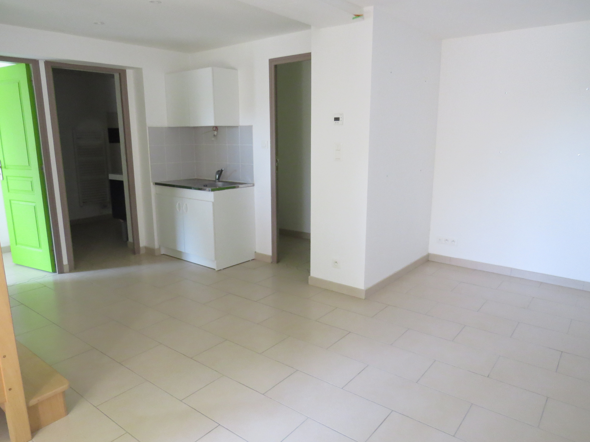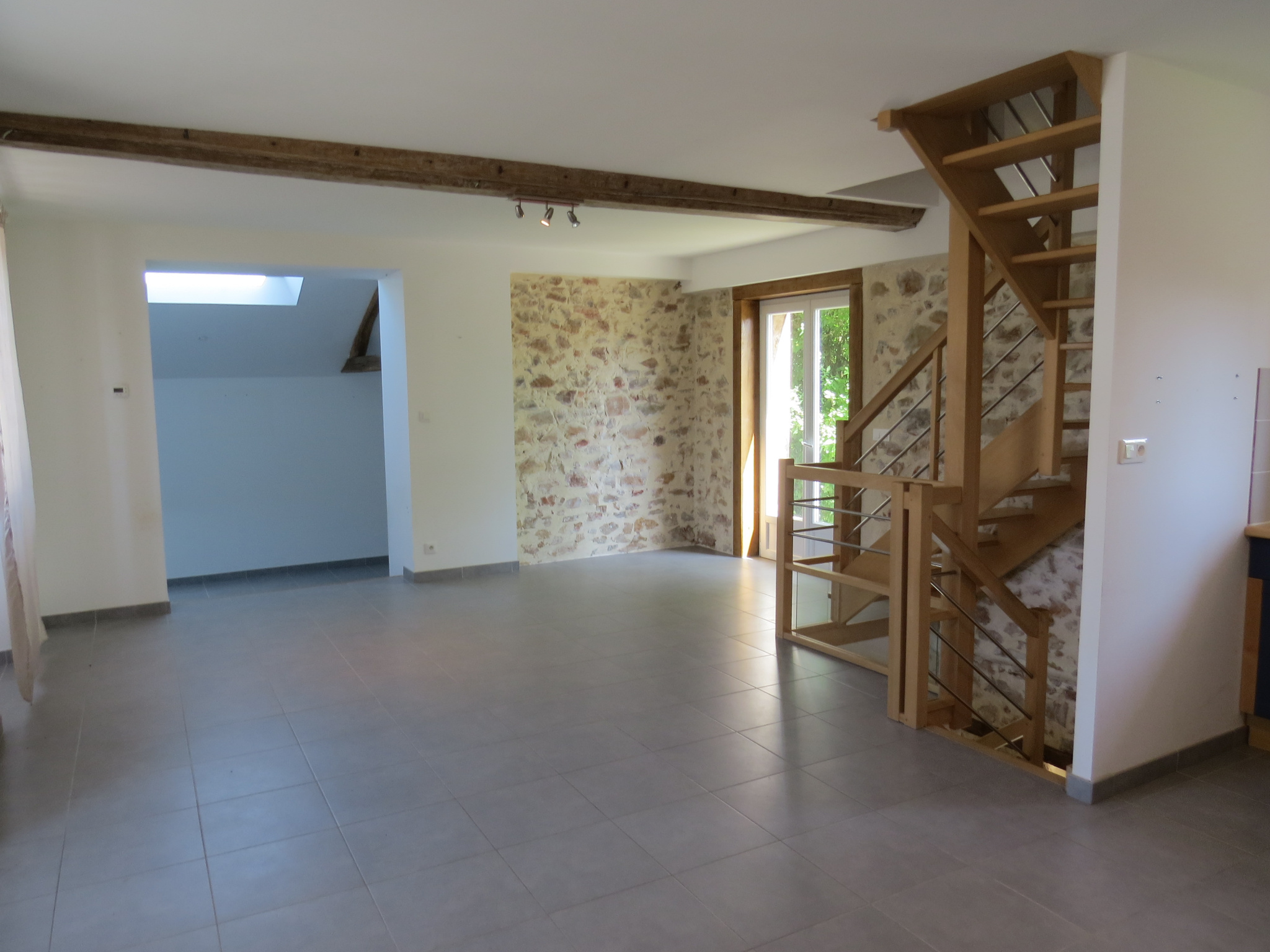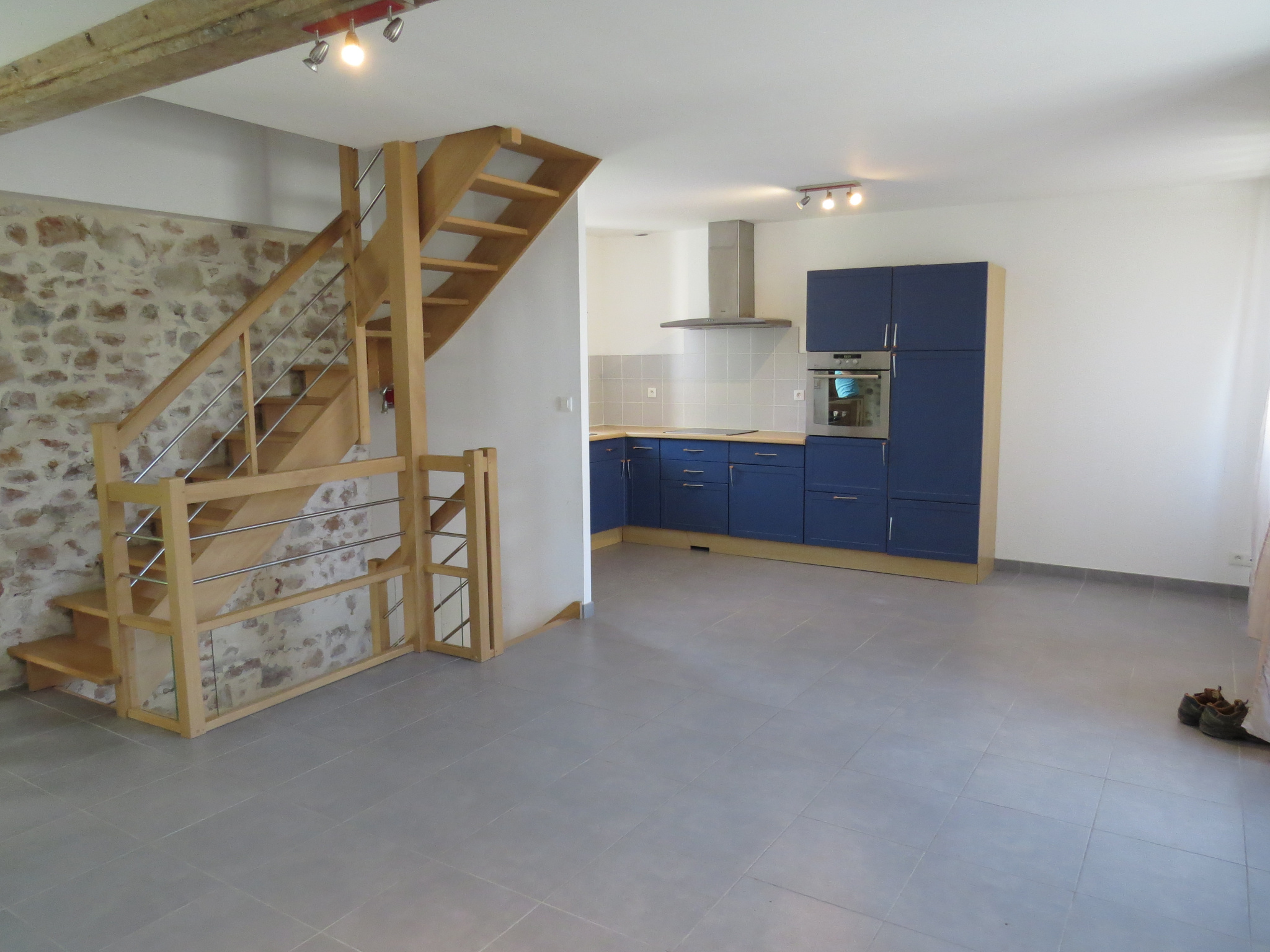 ...50 m2 composée : - Au rez-de-chaussée : un séjour ouvert sur cuisine aménagée avec plaque, hotte...