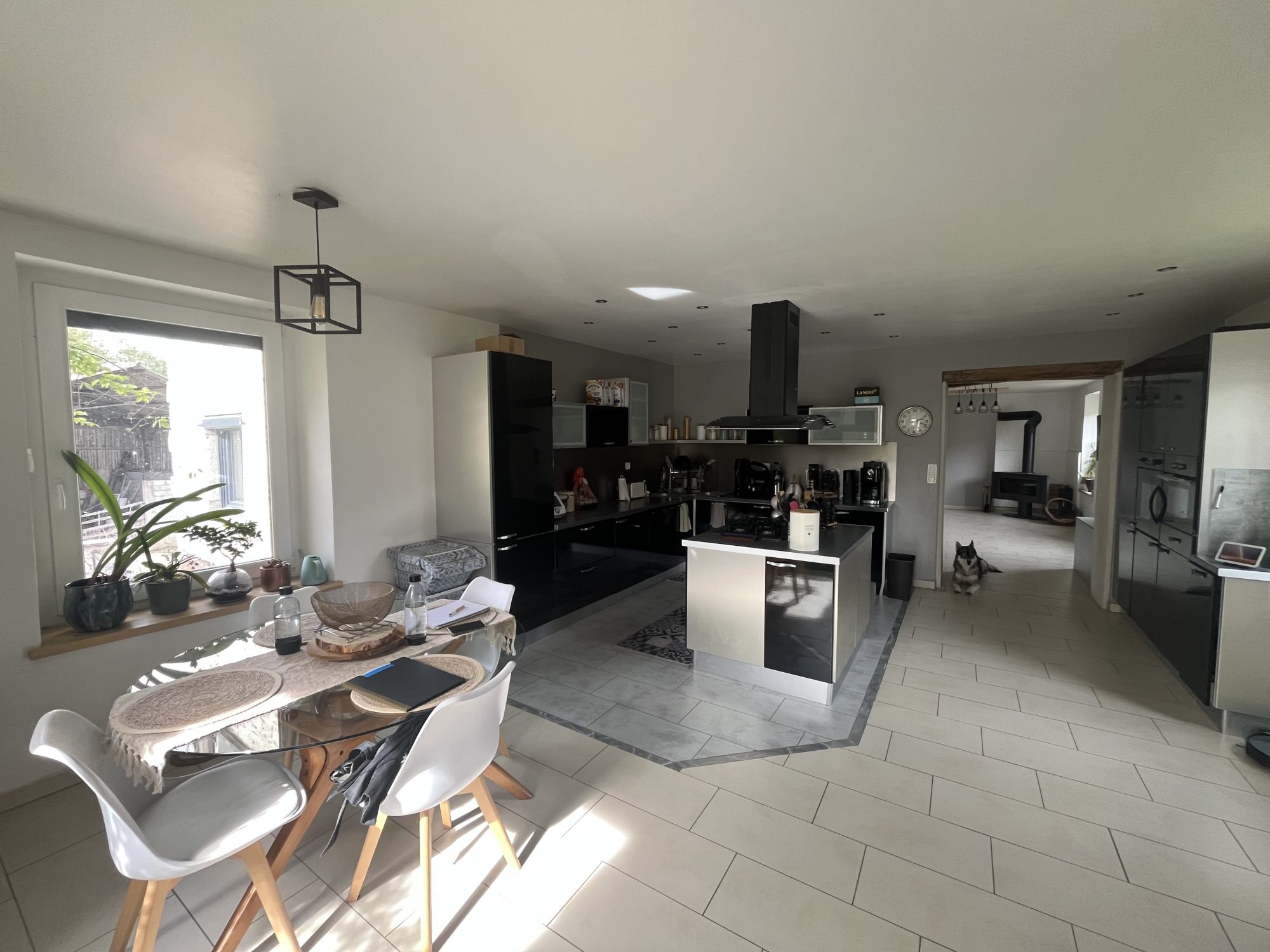 ...Elle se compose d'une cuisine aménagée et équipée (plaque de cuisson et hotte) ouverte sur un...