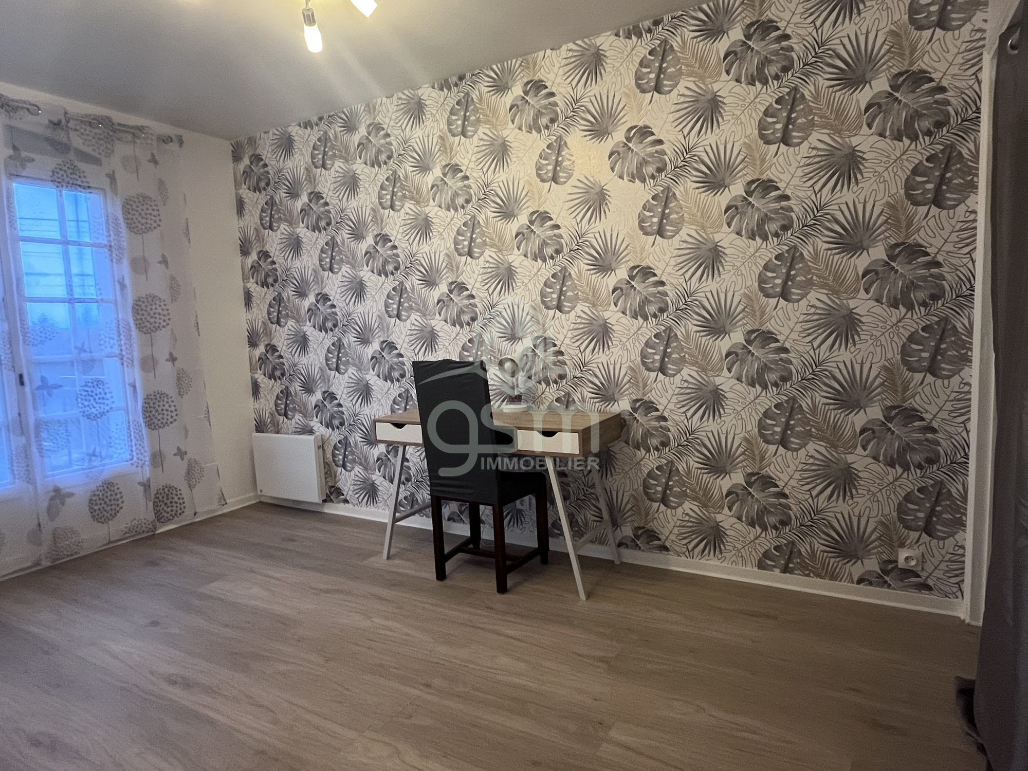 ...A l'étage une grande pièce séparée en deux espaces pouvant faire une chambre avec coin bureau, ou...