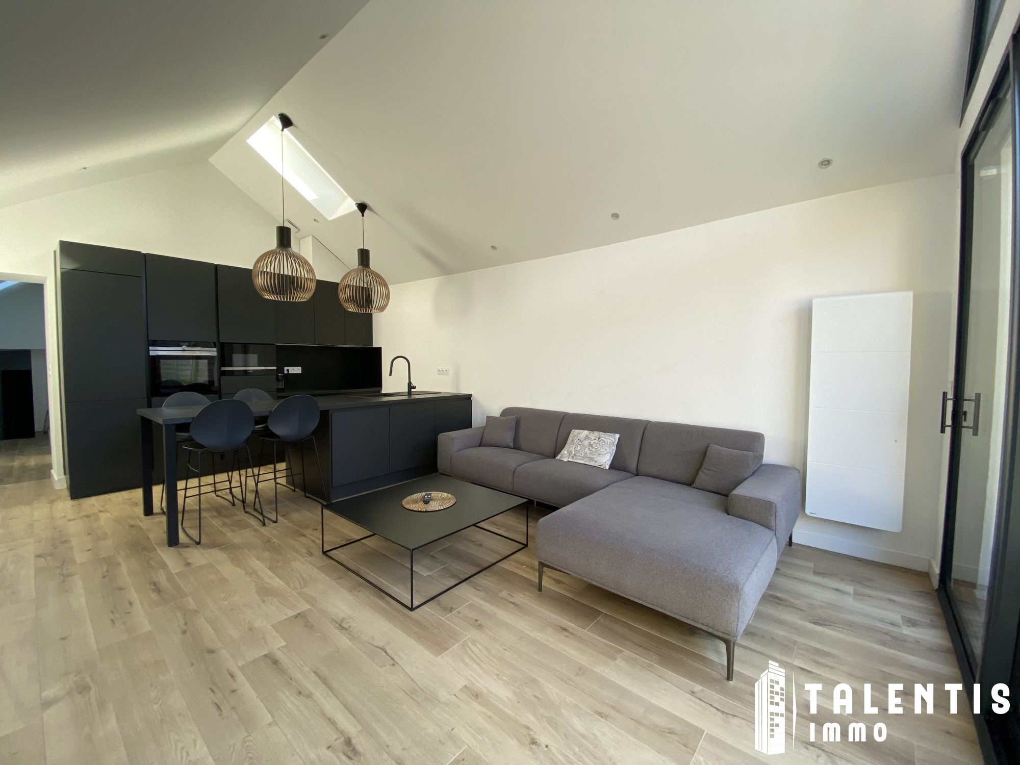 ...La cuisine, moderne, est entièrement aménagée et équipée (four, plaques, hotte, réfrigérateur,...