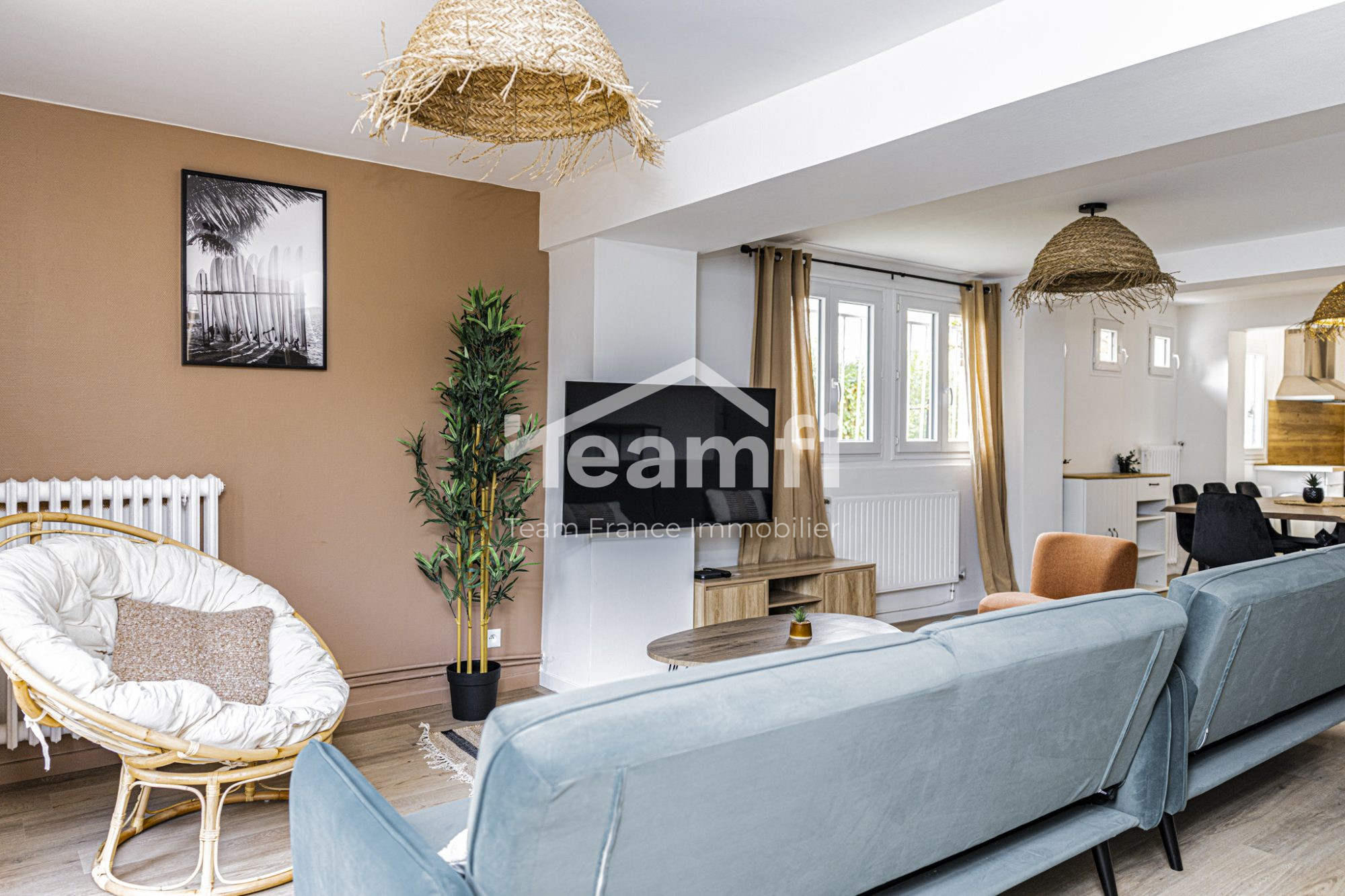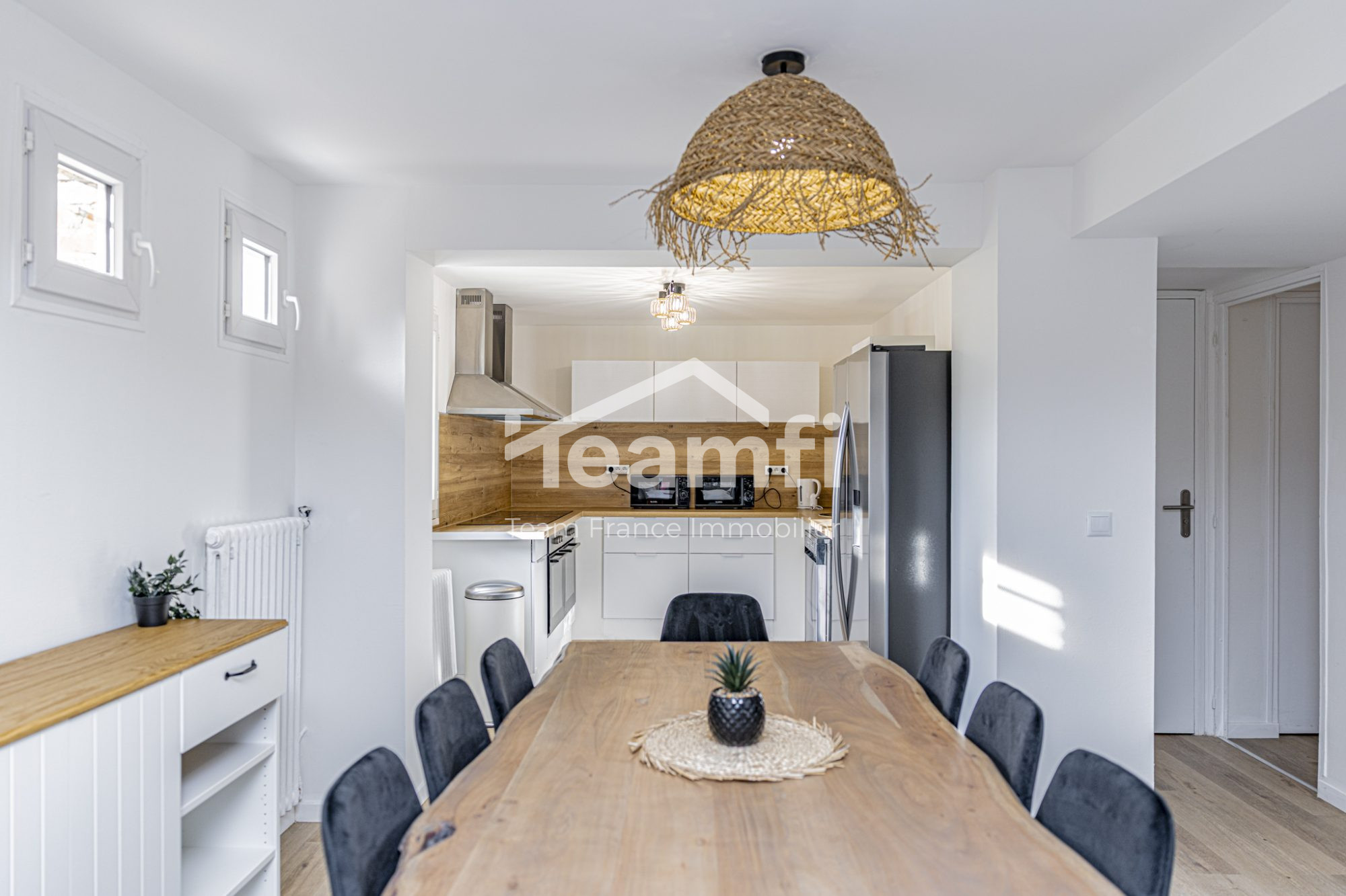 ...Sur jardin de 308 m², lumineuse maison de 125 m² comprenant un double-séjour, cuisine aménagée...