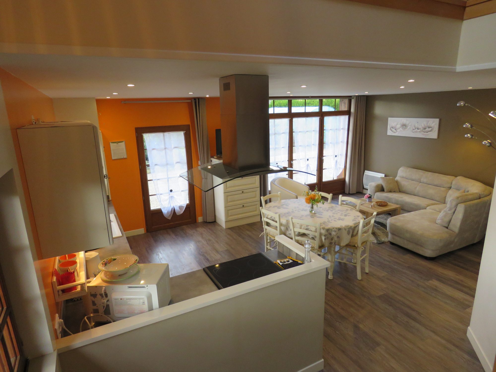 ...Maison ancienne rénovée par architecte comprenant :Entrée sur séjour double, cuisine américaine...