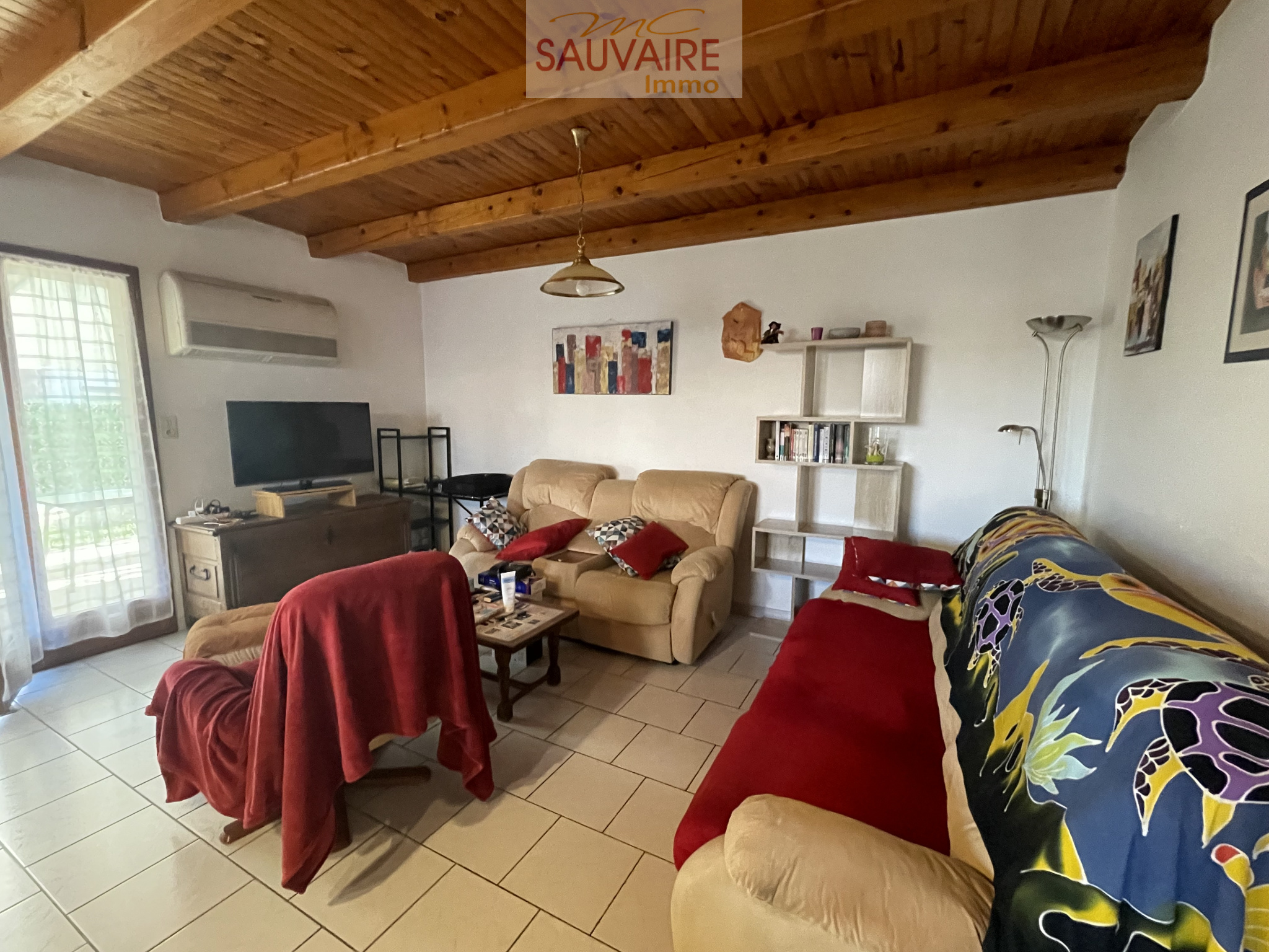 ...Elle se compose de trois chambres, d'un séjour équipé d'une climatisation réversible ainsi que...