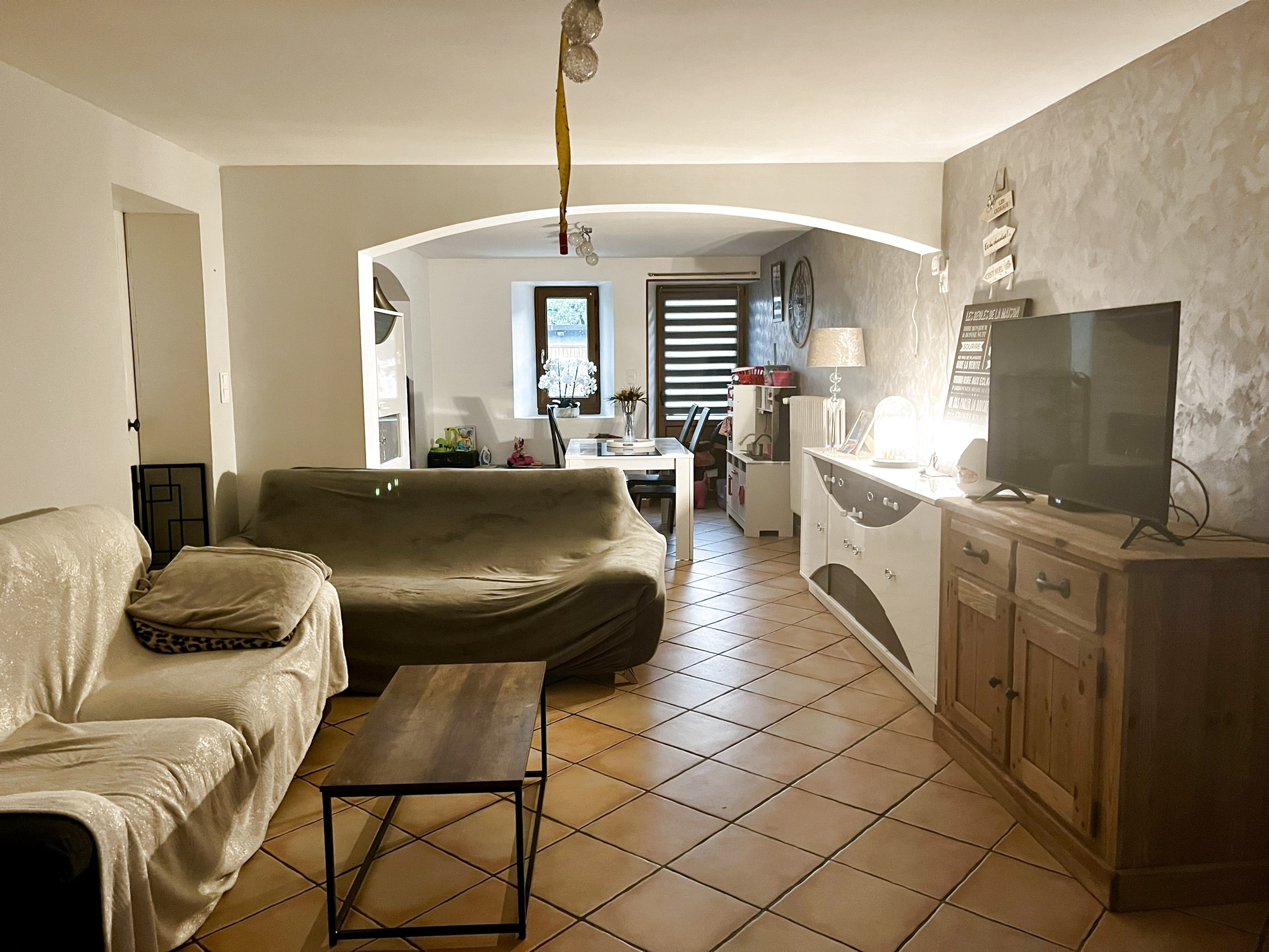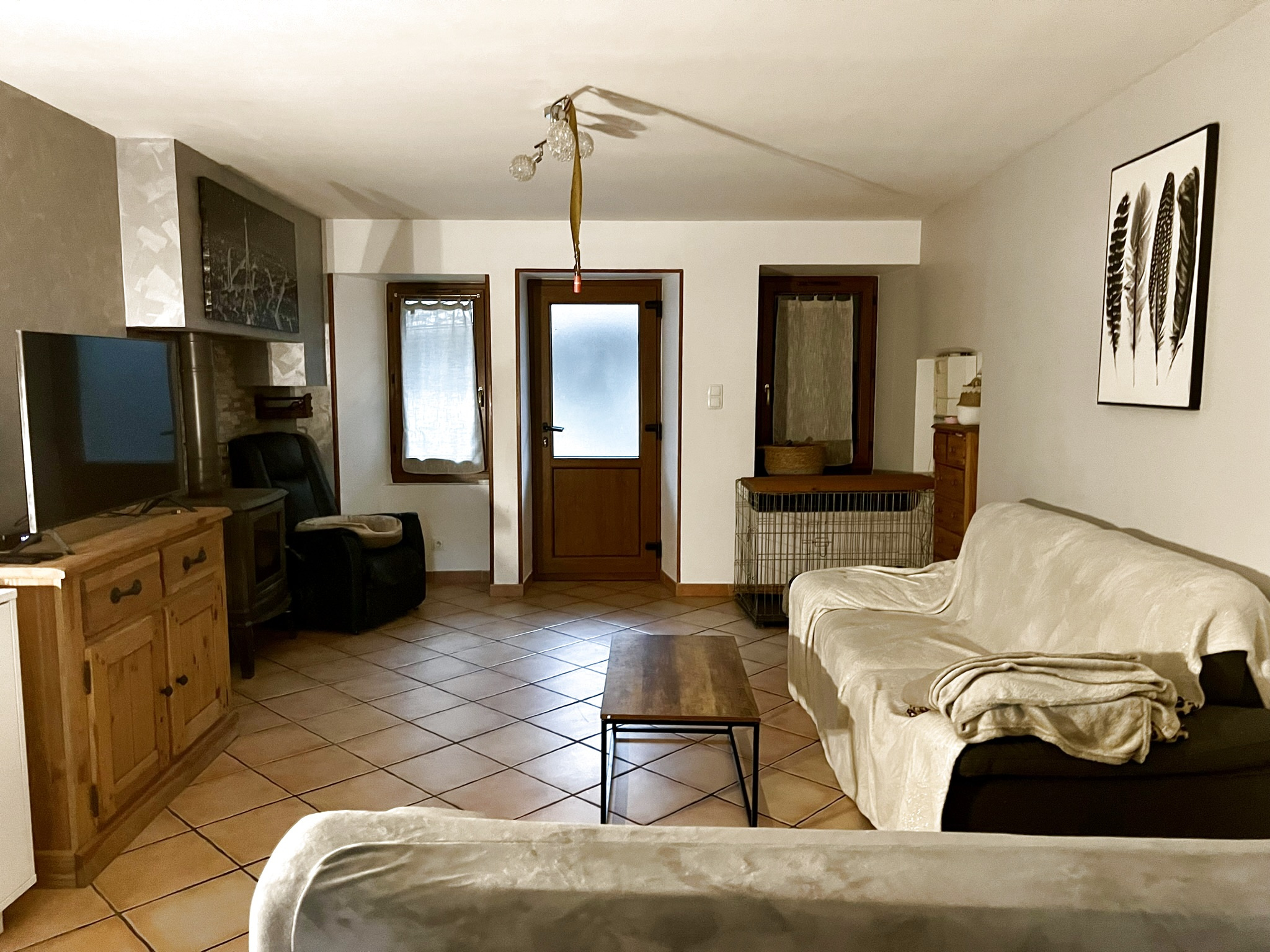 ...Pas de jardin ou d'extérieur ! En RDC : Un séjour avec poêle à bois, une cuisine, une buanderie...