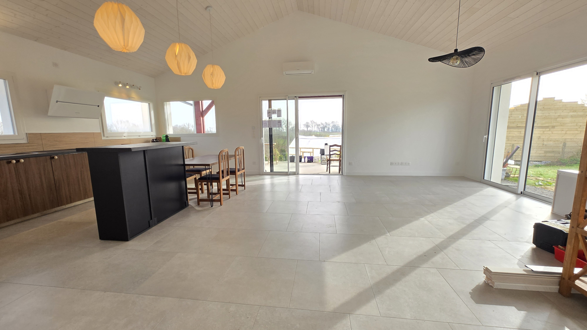 ...Un jardin privatif avec terrasse à l'arrière de la maison...