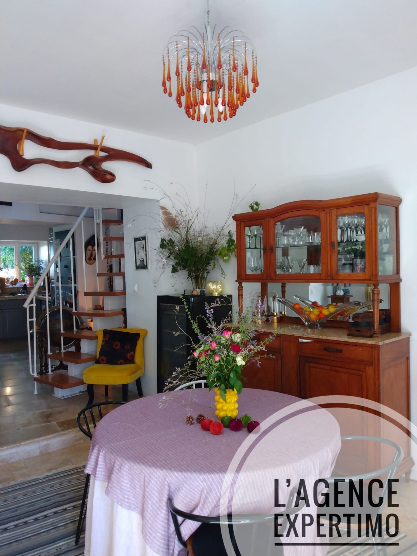 ...Au rez-de-chaussée, elle possède une partie salle à manger, une partie salon et une partie...