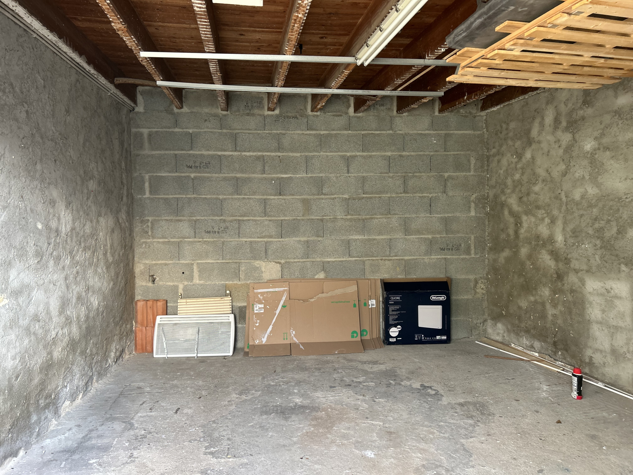 ...Garage et jardin avec terrasse, pelouse et claustras...