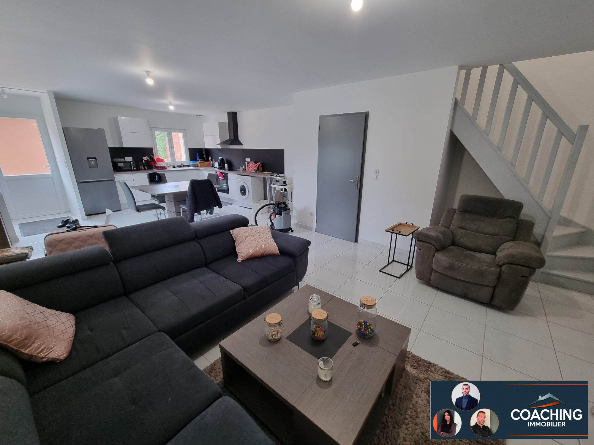 ...Maison composée en rdc ; un séjour ouvert sur une cuisine équipée 40m² et un wc...