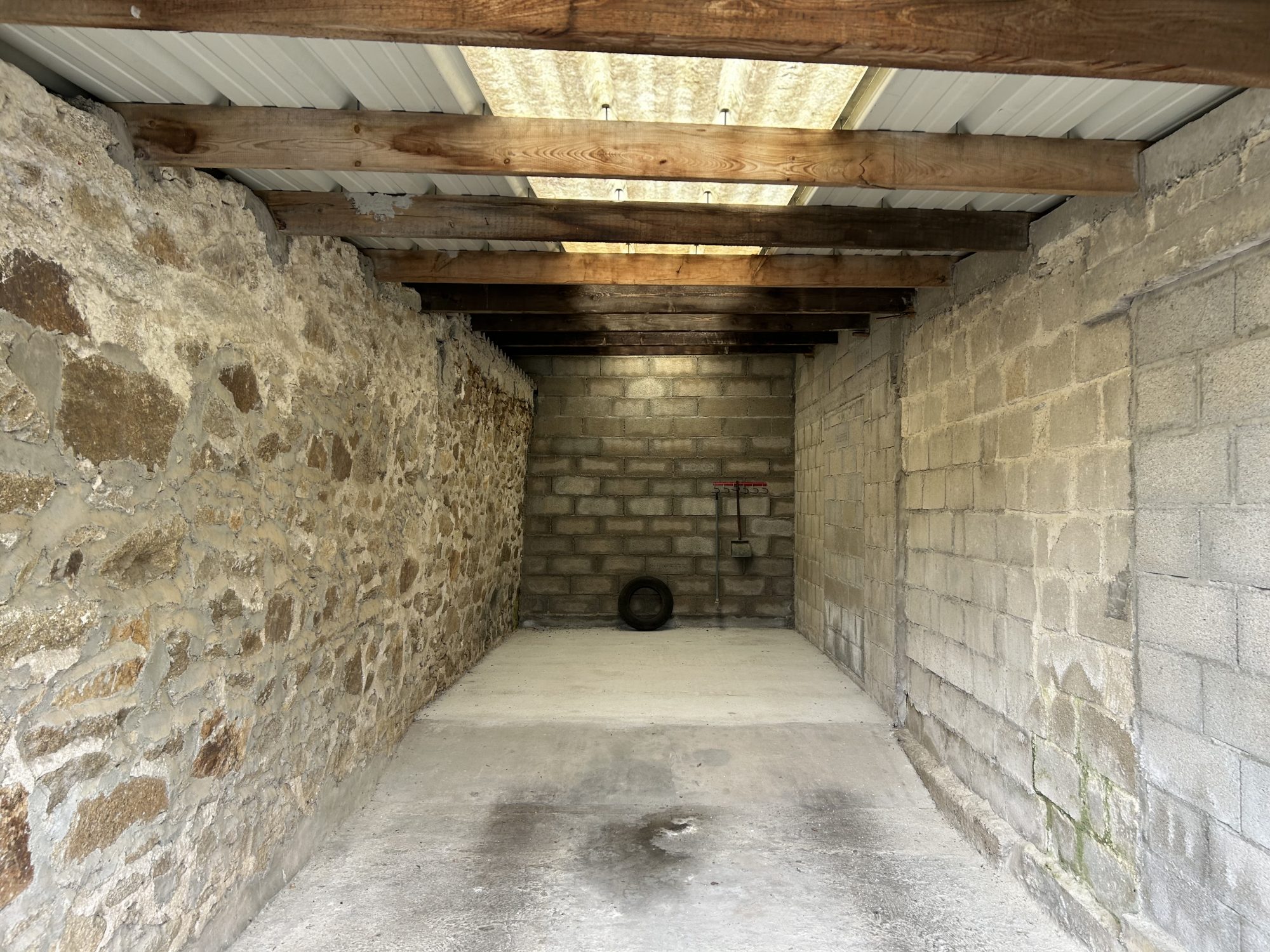...Ce hangar est équipé d'une dalle en béton et d'une toiture en fibro-amiante...