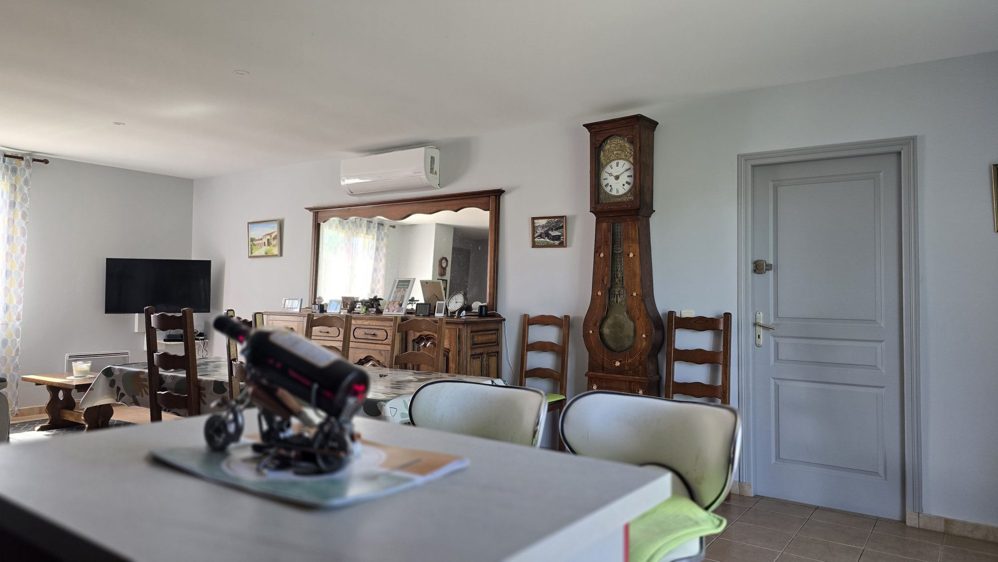 ...Au rez-de-chaussée, vous trouverez une partie garage, une chambre supplémentaire, une salle d'eau...