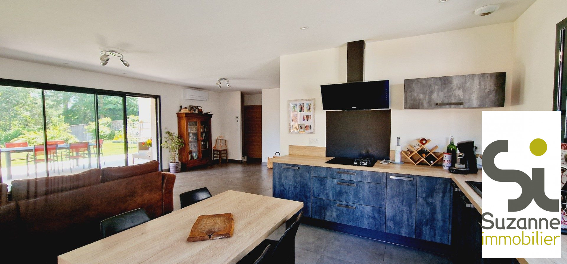 ...De plain pied, une pièce à vivre de 33m² : cuisine équipée /salon / buanderie/garage et cave...