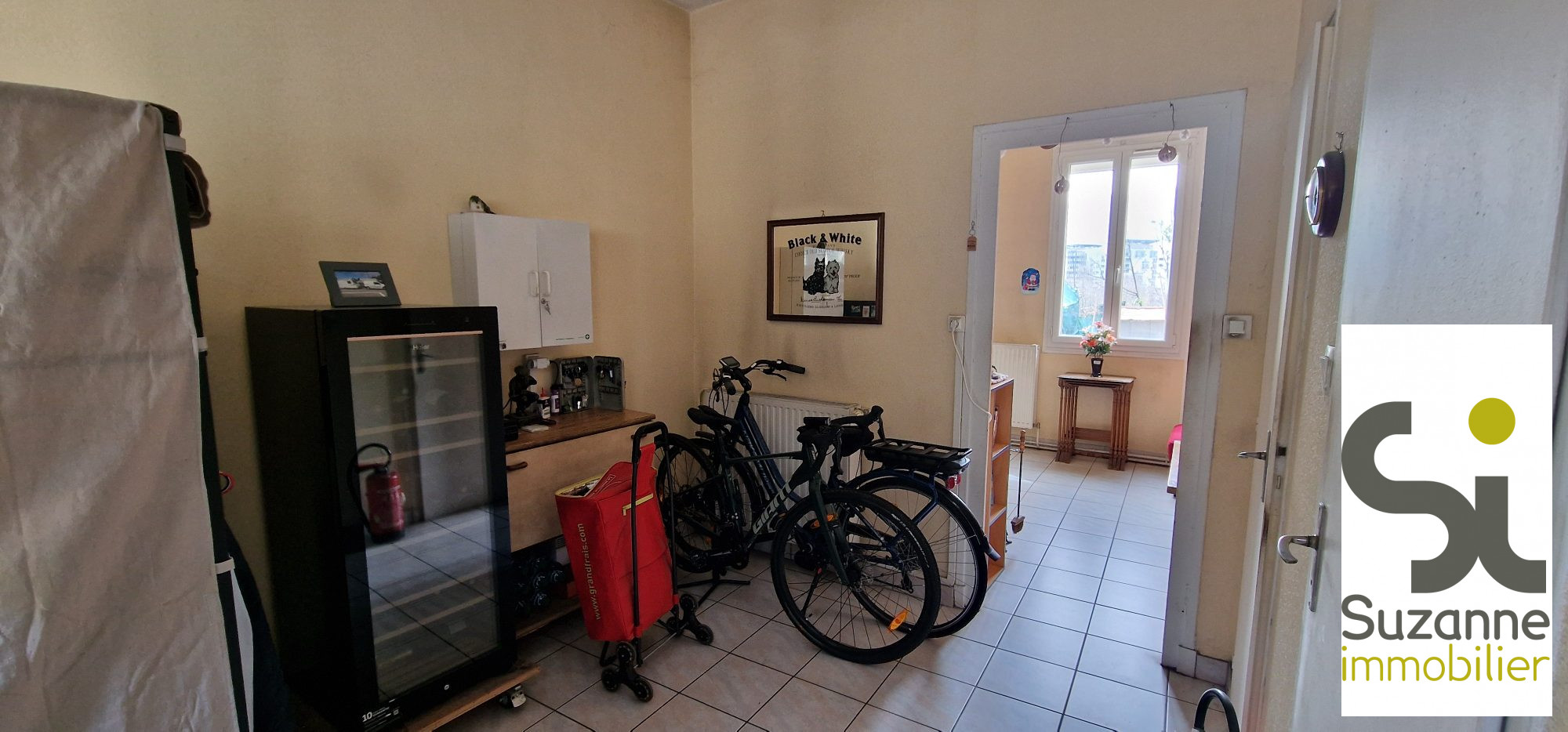 ...De plain pied, une pièce à vivre de 33m² : cuisine équipée /salon / buanderie/garage et cave...